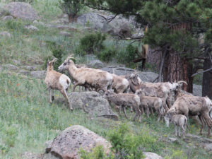 We quietly sat at our picnic table for about an hour, having our morning cup tea, only about 10 feet from where he was. After about an hour he stood up and walked by the end of our table, followed by his female friends and went up the mountain. WELCOME to COLORADO!