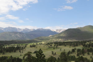 spot for the evening. The campground had some hot showers which was just the ticket we were looking for. The next morning we woke to the sound of roosters crowing and cow’s moo..ing…. We got a later start than we wanted at 8:15 and decided to make a big push to try to get to Estes Park before dark We had a long drive with the balancef Iowa, then Nebraska and finally Colorado. The drive through the pass to Estes was very exciting and really built our anticpation.