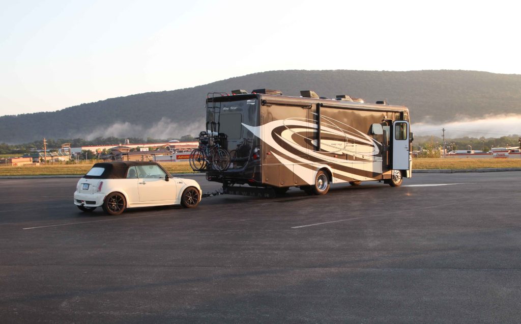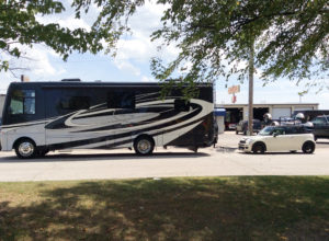 7/7/16 Well the day is finally here… We have been planning, coordinating, saving, anticipating, and working for years to finally buy our first Motorhome RV. While we have camped for years going through the natural progression of tents, pop-ups, and then trailers, we are finally stepping up to a motorhome in 2016. The process of how we got to this day is an entire blog post by itself and will have to wait for another entry. Today though is the day we are leaving to drive to Nappanee, Indiana and take delivery of our new 2017 Newmar Motorhome! The plan is to drive our 2006 Mini Cooper S convertible nearly 13 hours and over 800 miles to Indiana. The Mini will be our tow vehicle (toad) for our new Motorhome.