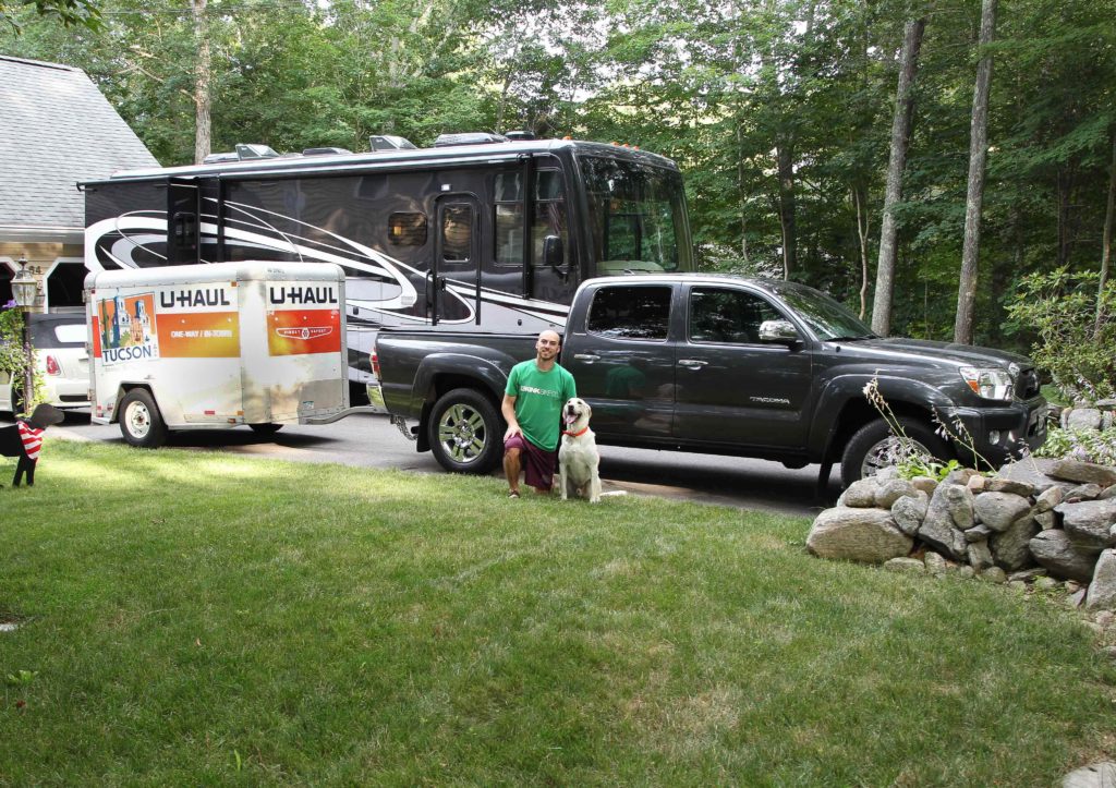 We arrive with only a couple of hours to spare before Sean heads West. Between the RV, Tow car, Sean’s truck, and the loaded U-Haul, our driveway is a busy place this evening. It’s been a big summer already, between getting a tow car, a new Motorhome, and now officially becoming empty nesters…