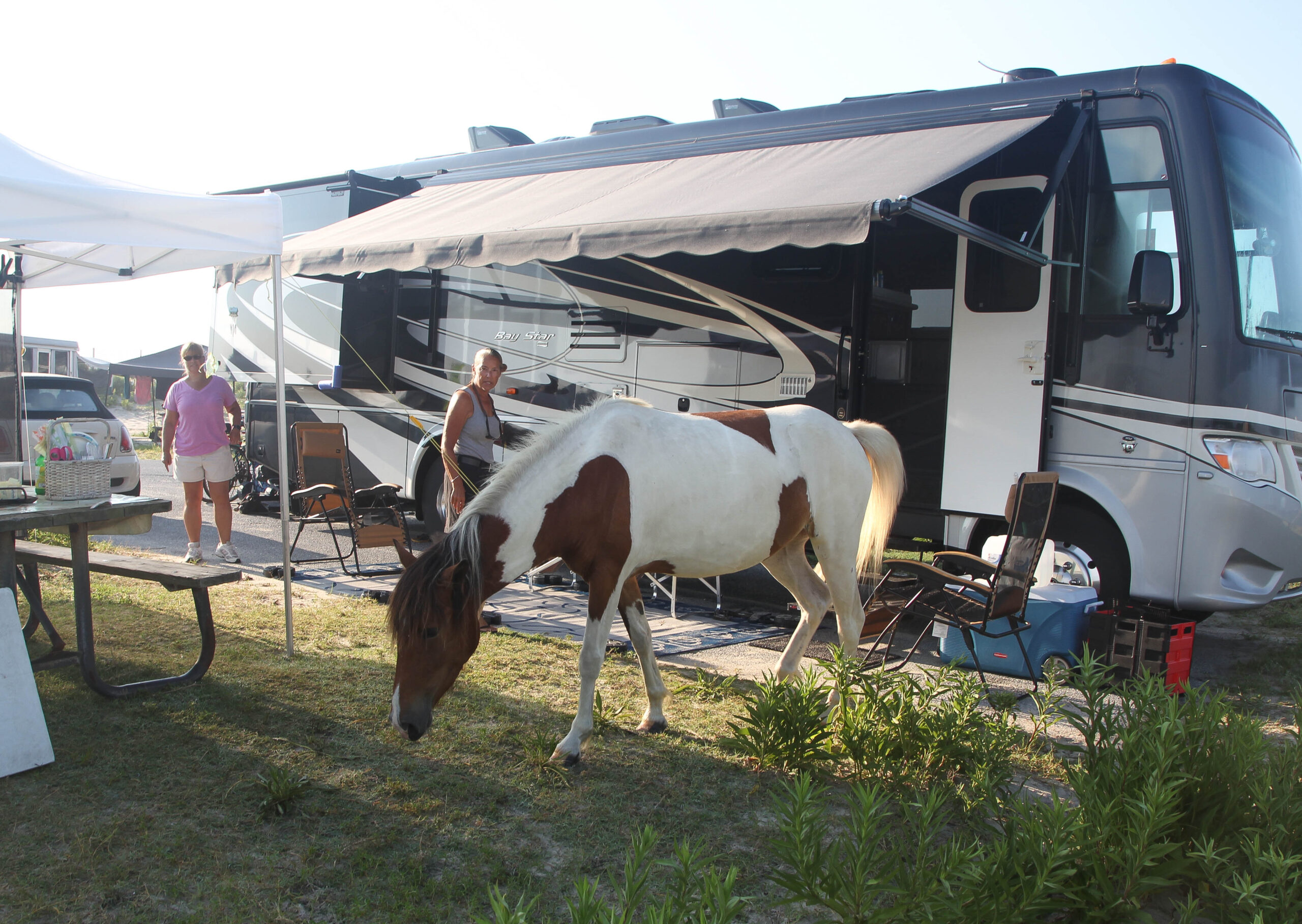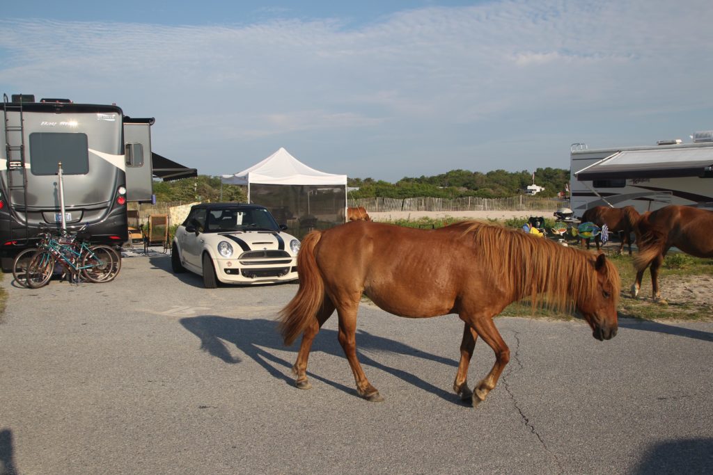 We traditionally camp on the “I” Loop which is the largest loop. Only one loop had electric and that is “H” Loop. Fortunately they have bathhouses on each loop, with facilities and hot showers. Joanne’s parents have been visiting here for over 40 years. Everyone on her side of the family comes here nearly every year for a reunion at the beach. Our kids literally have grown up vacationing each summer at Assateague Beach. I would be remiss, if I didn’t say, early on I was not enamored to dry camp every summer vacation here given the potential for mosquitos, weather, intense summer heat, and the challenge of tent camping in our earlier camping days. At Assateague their are no trees for shade and the weather can change very quickly. On top of that, while the wild horses are fun they can be rather challenging given their precocious nature to get into everything you have and leave presents (horse apples) around your campsite each day. Nonetheless, like everyone else in the family we have grown to love this place for all the memories we have shared here.