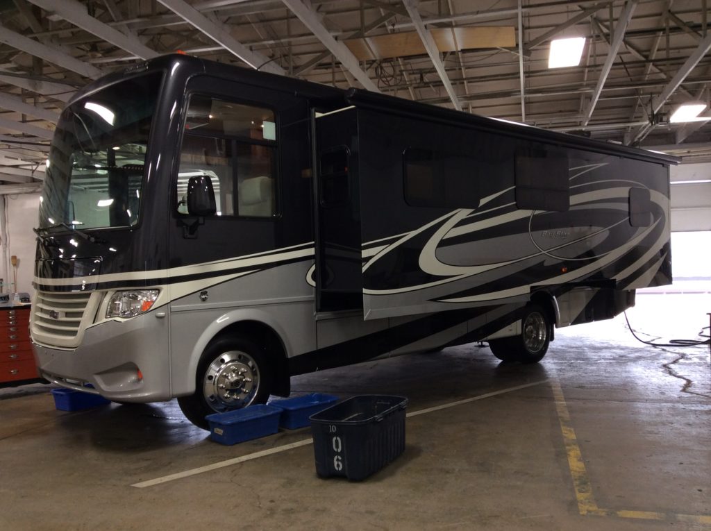 Arriving at 8:30 we are introduced to our assigned tech Dave who has been spending the last week preparing our RV for delivery. After introductions, he takes us to the building where they have been prepping the RV. Turning that hallway reveals our Motorhome completely prepped, cleaned, and set-up to begin our orientation. Joanne & I a very excited to say the least. Dave allowed us a little time to walk around the rig, inside and out, before starting the formal orientation. Dave has all the books, manuals, warranty information, and build sheets very organized so every detail is covered.