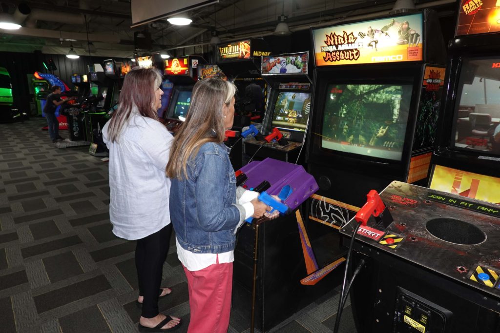 I’m certainly no authority on the subject though after attending their Expo 5.0 I’d be hard pressed to believe anyplace else has more pinball & video games in one place in the world. They open the museum a few times a year and the Expo is one of them. Tickets allow you unlimited play in the facility and takes you down memory lane of every arcade game you can imagine including: Pong, PacMan, MS PacMan, Space invaders, Galactica, Asteroids and every other game you can imagine from the 70’s to now. The Pinball area was a myriad of American culture that pinball games have been based on for decades…. While neither of the 3 of us are real gamers, I have to tell you, it was a fun few hours playing all those games… I especially enjoyed watching Pat & Joanne compete on one of those shooting, Big Hunter games. They surely were channeling their inner warriors….