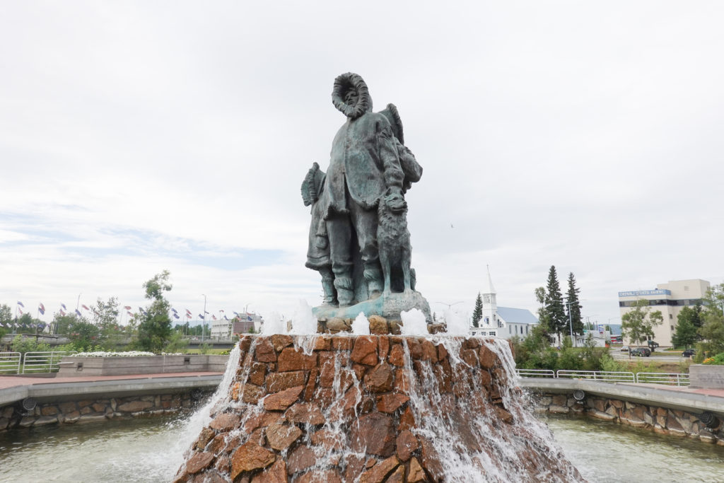 Statue in Golden Heart Plaza in downtown Fairbanks, commemorating the first settlers