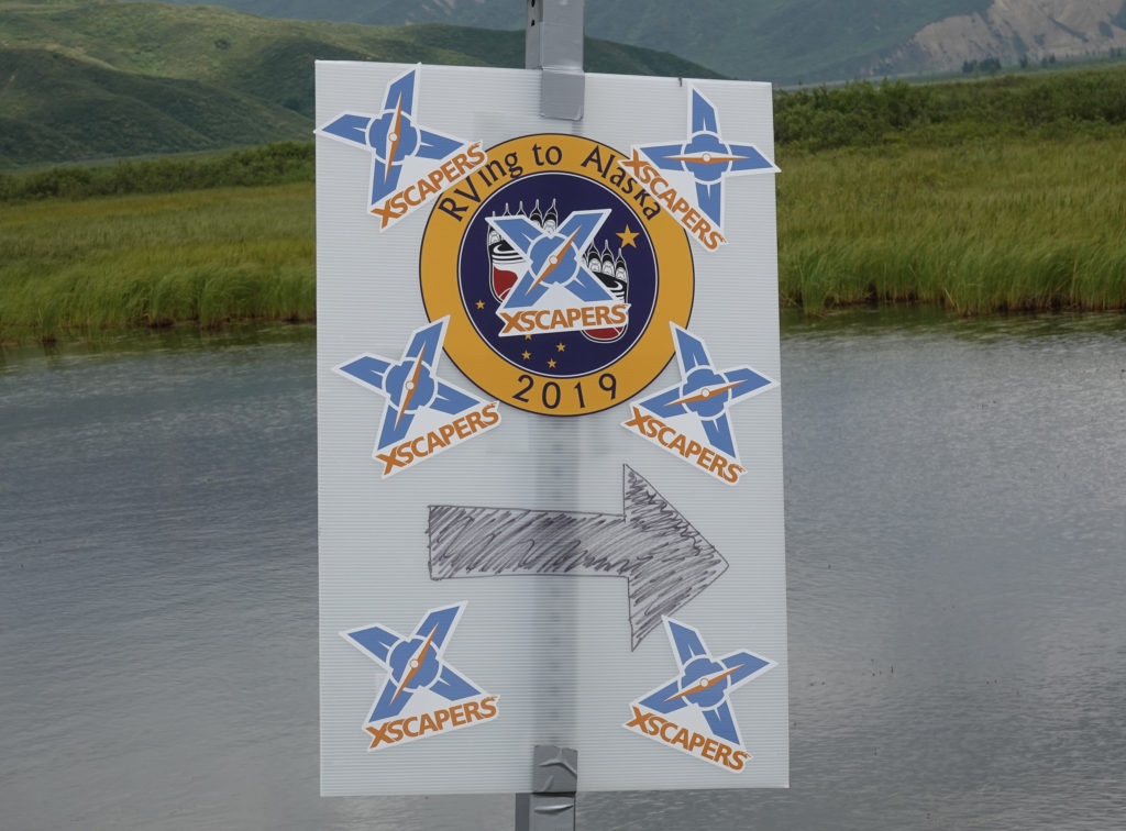 As we left Bear Paw RV/campground in Valdez, AK we stopped at the gas station for Mike to fill up with gas and propane.  While filling our tanks Joanne walks to the adjacent Safeway Grocery Store to pick up a few things because our next stop will be our  first Rally/Convergence at Isabel Pass, AK. When we had planned our route for this 4 month adventure we realized early on we would be strategically traveling through the area of the Escapees/Escapers 2nd Annual Alaska Convergence at just the right time to include in our itinerary. We have been members of Escapees for a few years and while people have raved about their rallies we just haven’t made the time to do one..