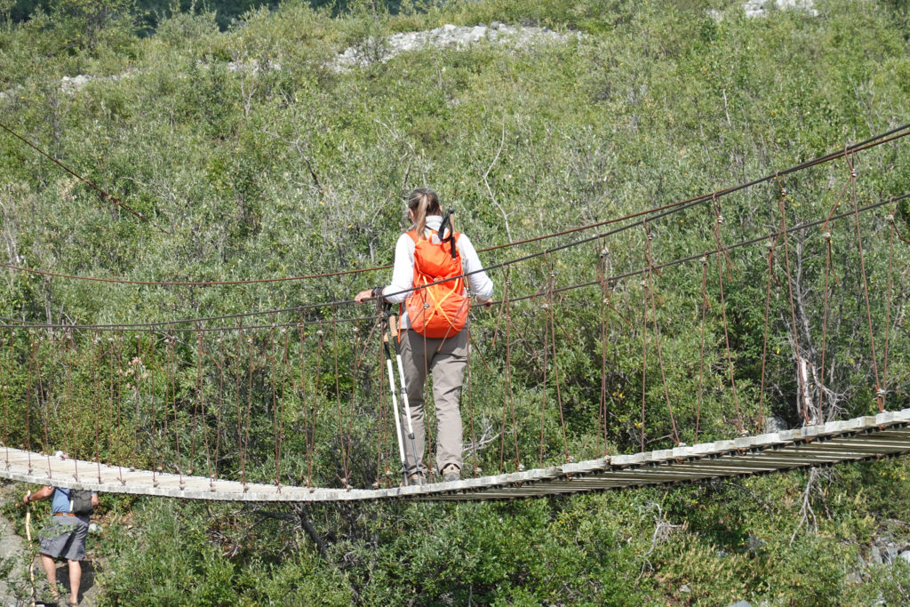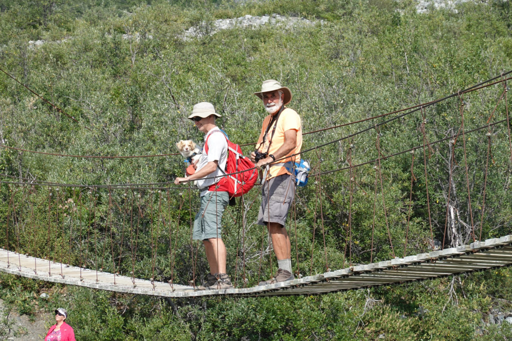 Sunday afternoon we take the formal hike with about 25 other folks in the group; the hike is listed as moderate.  It is about 8-9 miles roundtrip mostly over rocks and crossing a pretty long suspension bridge over the river. This is an exceptional hike to the glacier and both we both agree that it might be considered strenuous because the entire hike is on rocks and boulders. It is adjacent to the river,most of the way, and getting to the glacier feels like a definite sense of accomplishment.