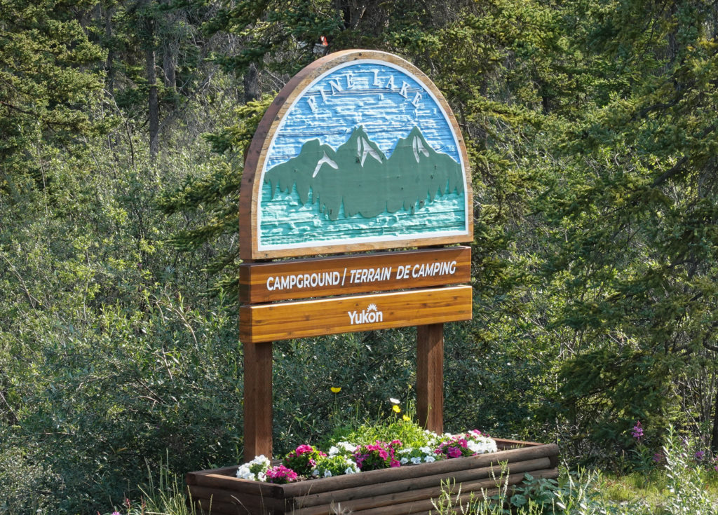 On the way through Haines Junction we fill up with gas as we heard it is quite expensive in Haines. We have a choice of a few campgrounds and decide to spend the night at Pine Lake Yukon Government Campground. In the past we have loved the Yukon Government Campgrounds; they are inexpensive at $9.00 US with free firewood and usually pretty quiet. This one is no different! We find a pull through site that is fairly level with lots of room. After registering we pick up some firewood, make some sausage and peppers and settle in by the campfire. Lots of families here so lots of activity. Tomorrow we head into Haines!