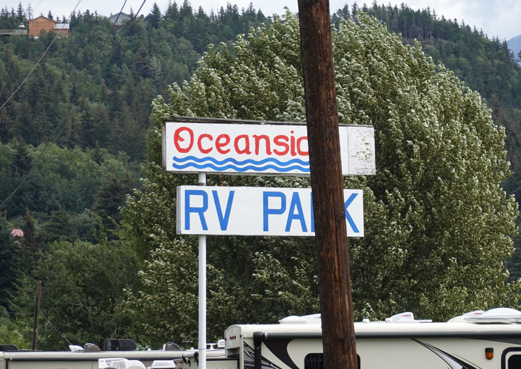 The drive down into Haines is done on very good roads and the scenery is spectacular (though no wildlife). We had called in the morning and because the ferry system has just went on strike we are able to secure an ocean front campsite at Oceanside RV Park (though a little pricey at $40.00 / night for dry camping). When we arrive they allow us to dump and take on water from one of the full hook up sites that is not occupied yet (they usually charge for this). This campground is very convenient as it is right in town. We get set up and in the process meet a couple from LaGrange NY (close to where we both grew-up in the Hudson Valley). As we begin to chat we find we have so much in common (their son is getting married late Sept. while our daughter Cait’s wedding is Oct 5th. They had started full-timing about the same time as us, after selling their house, they also have a Newmar coach…)