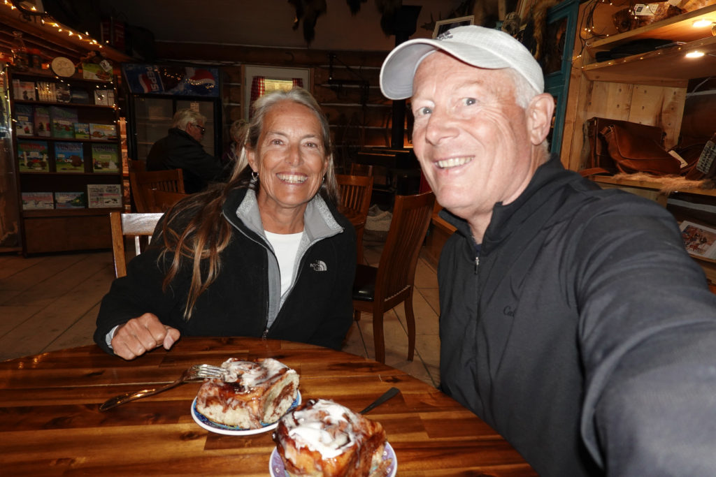 Since starting this Alska adventure we have heard many stories about the famous Cinnamon Buns that can be found here in the North Country. Everyone has a story about their favorite. Since we have been good the entire trip we felt it was a must on these last days to finally sample a Cinnamon Bun. Are we ever glad we waited until now. We pulled into the famous “Tetsa River Lodge” at mile 375 of the Alaska Highway to order one at their proclaimed “Cinnamon Bun Centre of the Galactic Cluster”… Now I have no idea what that means but I’ve got to tell you it was incredible and worth the wait….Yum… Double YUM (with Emphasis)…
