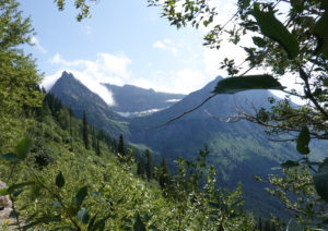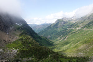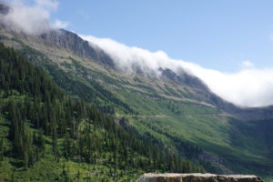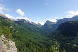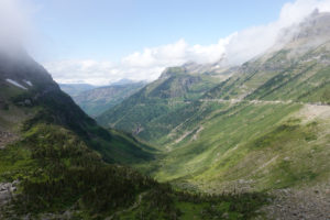 As we head into Glacier National Park and turn onto the “Going To The Sun Road” we take drive through the Apgar Campground inside the park (the only one that would take our size rig) but as we drive through we see that many of the sites are narrow and would be tight for our slides or are nowhere near level. It would have been cheaper but we agree that where we are is best for us.