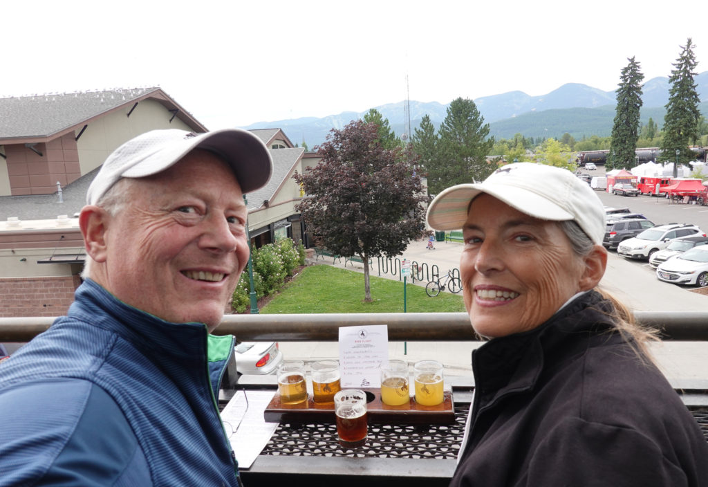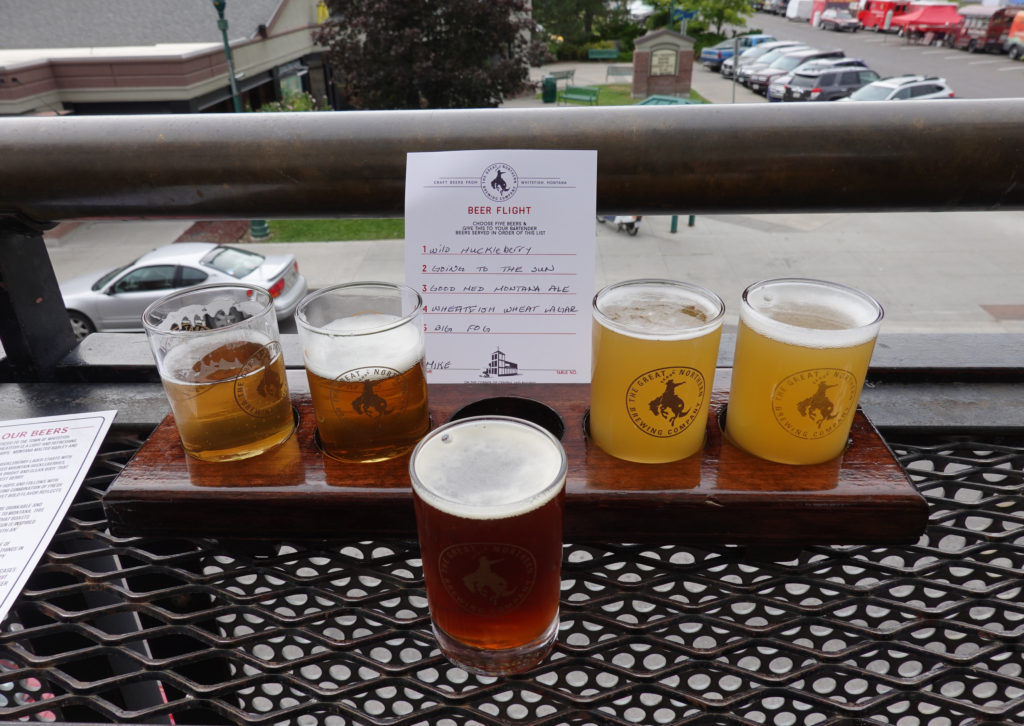 As we finish the drive we decide to drive back into Whitefish. We had driven through this town on our way yesterday and it looks like such a cute town! We find the Great Northern Brewery and sit outside on the top deck and people watch as we share a flight. Loved some of their beers! Then head next door to Craggy’s for a bite to eat.