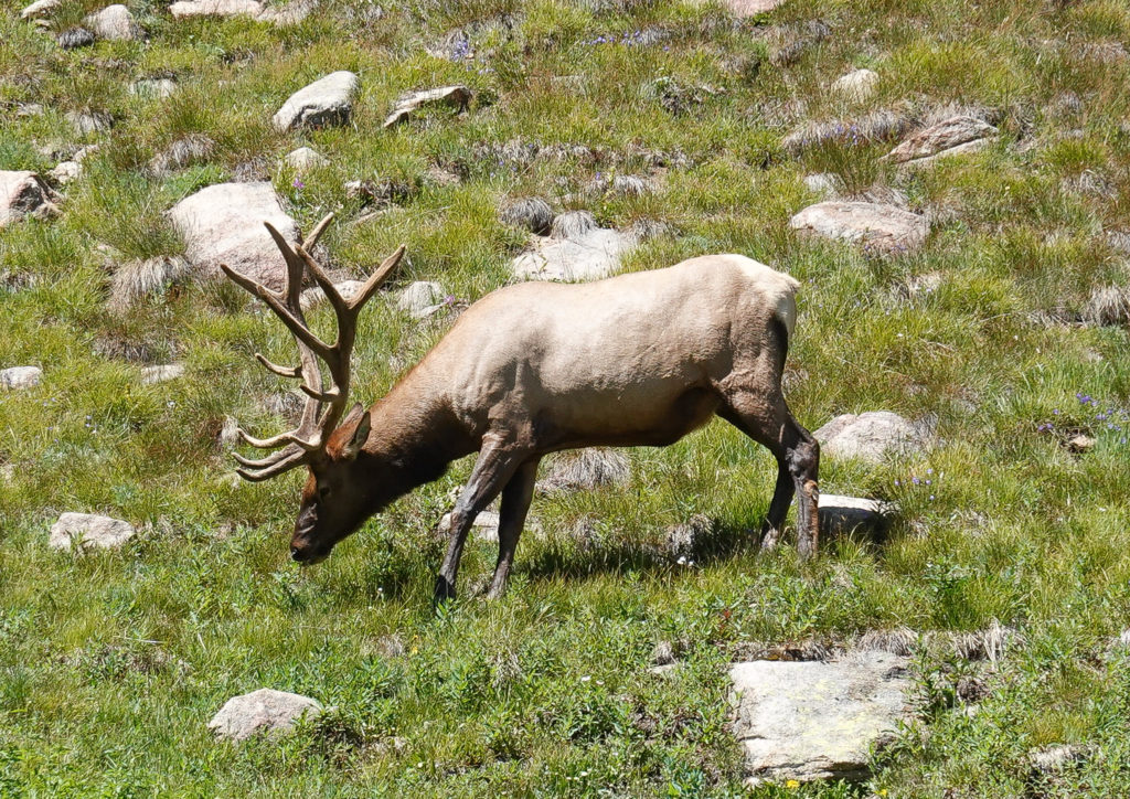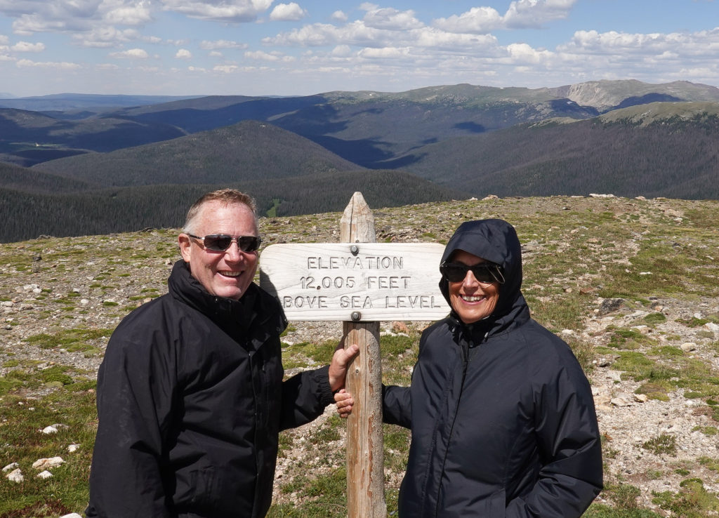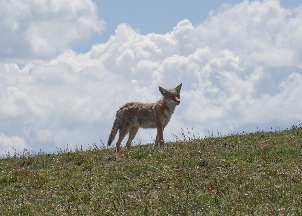 Today is our designated day to enjoy Rocky Mountain National Park. The plan is to drive up to the visitors center at the top of the Trail Ridge Road. The drive is amazing (just as we remember with the kids in 2013); The only drawback is the road construction close to the top. Going we had about a 20 minute wait. Returning we had about a 40 minute wait. But it was all good as we had the top down, country music playing and a lone coyote strolled by a few times! On the way back we took the path that led through the flats where we saw mountain sheep in 2013 but no such luck this year.
