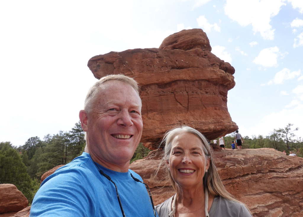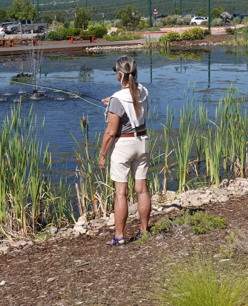 When we arrive we are delighted to see a huge parking lot for RVs and about three already parked. We find a spot around the perimeter (so we can open our slides), level out, jacks down and don’t open our slides until after we get back from driving through Garden of the Gods. Once back we put our chairs out and found it very relaxing. When Joanne checked to see what time they close for the night she noticed they have a fly fishing workshop Saturday morning (Mikes Birthday – tomorrow) so Mike goes in to sign us up! What a great find! This is the first time we have stayed overnight at Bass Pro Shop but it definitely won’t be the last!!