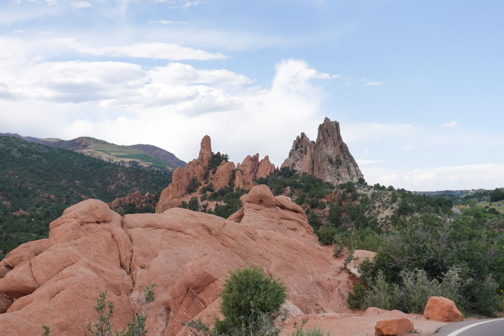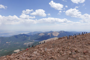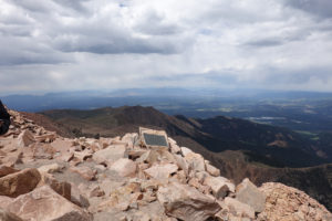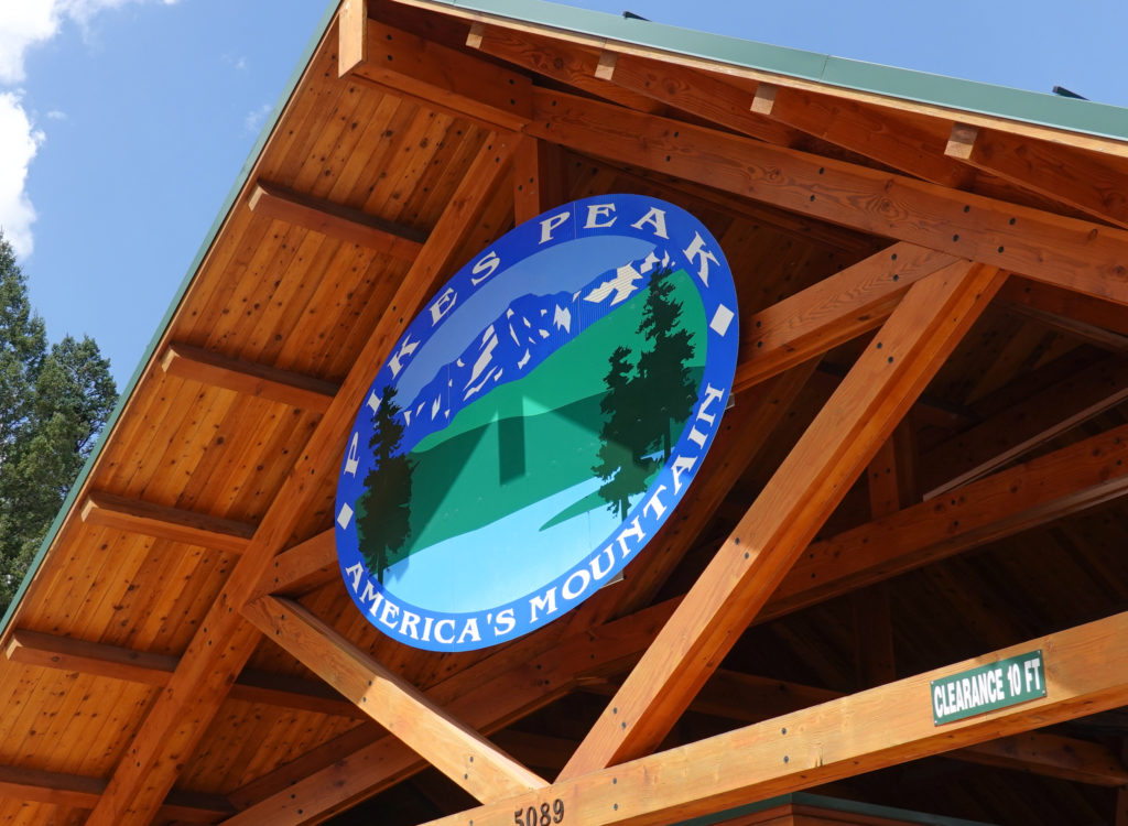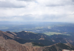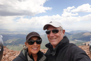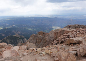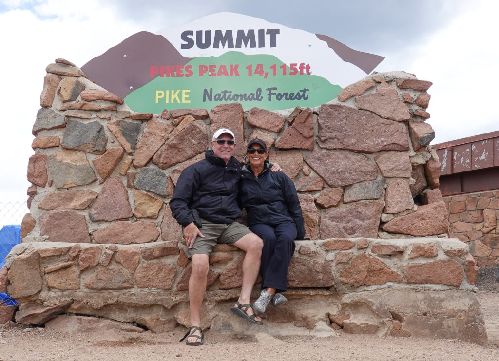 Once finished we take the drive up to Pikes Peak– a pretty close drive). You can only drive 16 miles in then have to take a shuttle the rest of the way up bc of construction. Another fun drive in the mini on a cool windy road. The temp drops along the way up but we are prepared (learned to layer and bring extra jackets from RMNP Trail Ridge Road experience!)