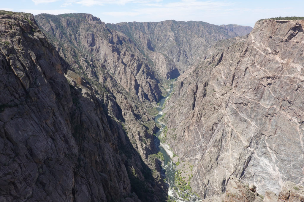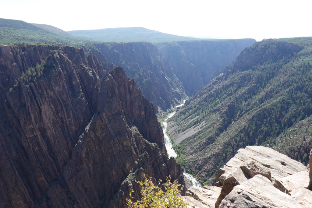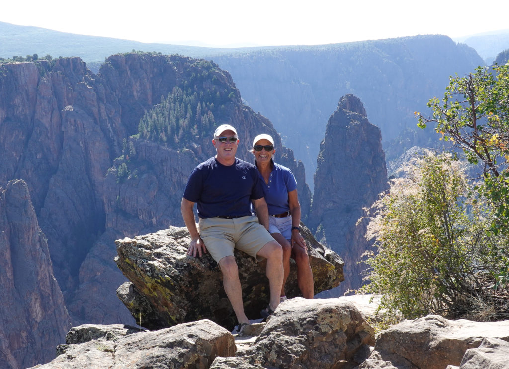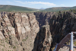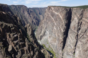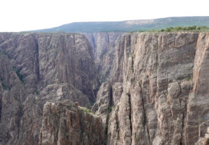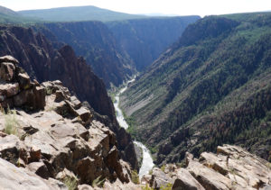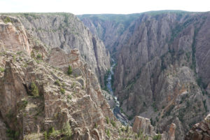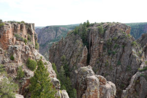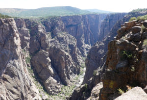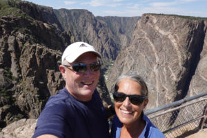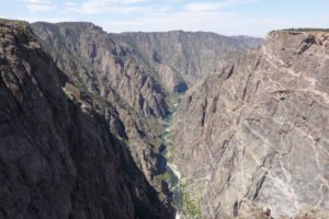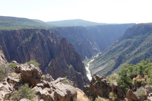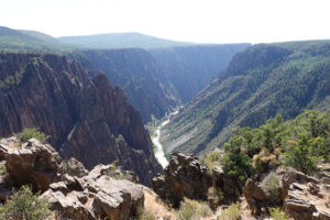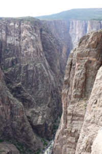 Today we head into Black Canyon of the Gunnison! We have been looking forward to visiting this park for a long time! When we decided to head to Estes Park for the wedding we could see coming here as a possibility. This park is awesome! The canyon walls, river below, and the surrounding mountains make for an amazing day of viewing. The best part is the lack of crowds! We had read that this National Park is one of the least visited and with it still prime tourist season it is nice not to have to fight the crowds to get a view. The drive through the south rim takes about two hours then we make the 90 mile drive around through Delta, CO so we also visit the north rim which is very different from the South Rim. The North Side is very undeveloped. There are three other travelers driving the road in the park while we are there. As we leave we drive on Rte 92 completing the circle back to Gunnison. WHAT A DRIVE!! Do not miss this drive if you are in the area! Doing both rims on the same day was pushing it- mid 90’s each day and long days hiking out to viewing areas, and driving with the top down, is all exhausting! But that seems to be our MO- plan the day then throw in a few more hours of activity!! Hope it keeps us young!