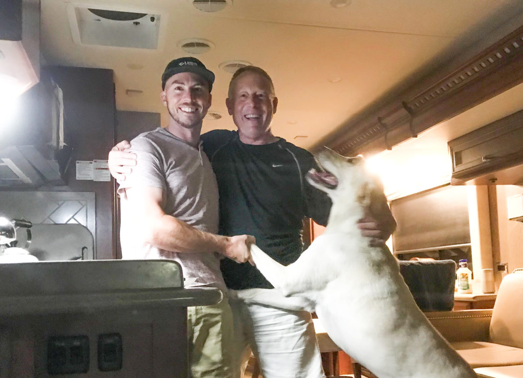 We pull into Cracker Barrel in Loveland, CO and decide to spend the night before traveling up to Estes Park early the next morning. Mike has tried to reach out to our son Sean a few times just leaving messages; though just as we get settled in at Cracker Barrel he calls Mike back and we spill the surprise! He immediately comes over with his yellow lab “Otis” as his new apartment is incredibly only about 15 minutes away. Sean & Otis share dinner with us and we are all excited to catch up. Sean also tells us he is meeting his cousins (Jeremy and Tara) from Florida the following evening for a concert they have flown in to see at the famous Red Rocks of Colorado venue… Good thing we reached out to him this evening as we probably won’t see him again until the wedding day up in Estes Park… It seems the wedding is a loosely planned event so noone has definitive ideas of what Wednesday and the wedding festivities will bring.