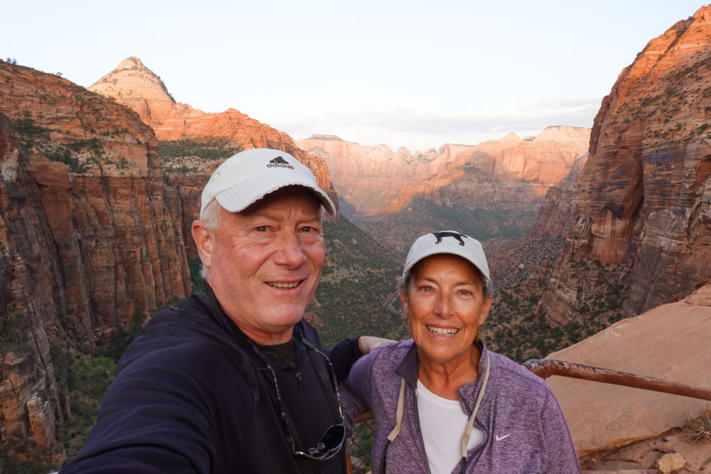 We are so glad we decided to get up early for this special sunrise. The hike was not overly difficult and we were rewarded with a great perspective of Zion NP valley at sunrise! The sun actually rises behind you as you stare up the Valley below and as it climbs, the mountains become alive with color.. It was spectacular and if in Zion you really should try to do this. Note: you do not need trekking poles for this hike and they could be a hindrance. Our recommendation is plan to sit for at least 30 minutes at the top and just relax and take in the moment…