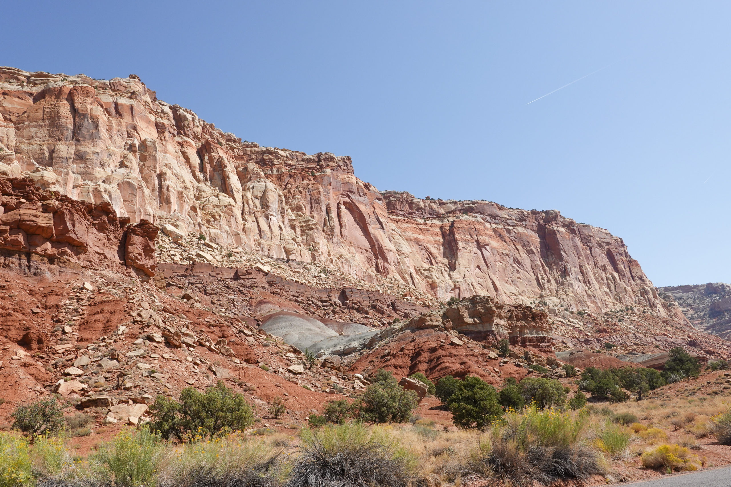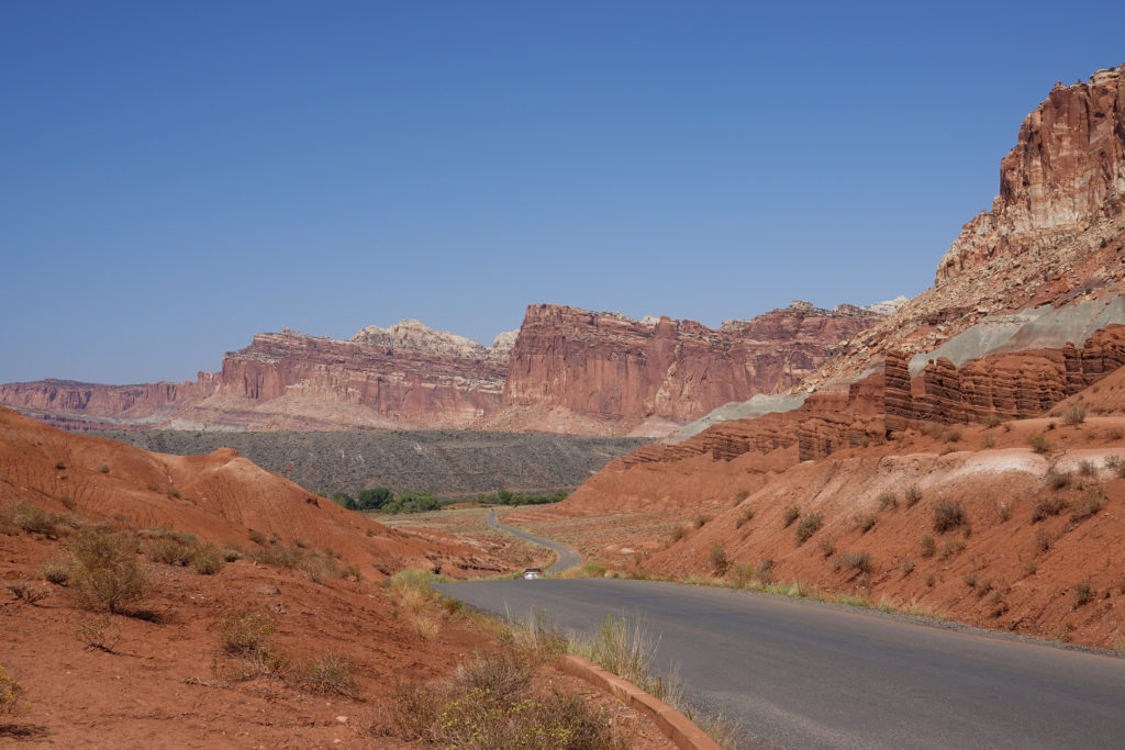 The “Burr Trail” is probably the only drive in our history that we actually both were concerned we might not make it out in the car and would have to hoof the last 20-25 miles…. Concerns of an impending flat tire (with no spare on board), getting stuck in the heavy sand, breaking an axle, or just a significant breakdown, were definitely top of mind with little exaggeration… It was so stressful, for nearly 3 hours, we hardly got to enjoy some of the most beautiful parts of Capitol Reef National Park. Finally at about 70 miles into this nightmare we could see some actual pavement about a mile ahead.