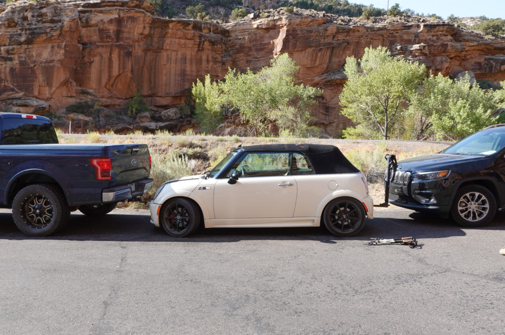 After the first few miles of going less than 5 MPH we knew we had made a mistake. We didn’t know it was going to be as far on this road as it was and turning around would have required nearly another hour back to Boulder… (In hindsight we should have turned around…) About 1 hour into the dirt nightmare we arrived at the famous “Burr Trail Switch Backs”… Just when you thought things couldn’t get much worse??? The switchbacks are very steep, and the terrain is incredibly challenging, even for a 4 wheeler. In a Mini we were borderline crazy for sure….