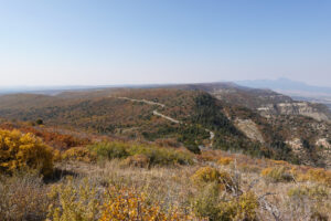 Departing the visitor’s center we begin the drive up to the top to see some cliff dwellings. In 2001, with our kids, we were able to take some tours with rangers down into the dwellings; but with Covid all the tours are closed and no one can get down into the dwellings. No matter- we were still able to see them from a distance along the scenic drive. Some of the dwellings we saw were: Spruce Tree House, Cliff Palace, Balcony House, Sun Temple, and several others that we saw from pull outs along the way. It is amazing to think of this as a thriving community so long ago and that people actually built and lived in these dwellings built into the cliffs. As we drive the Mesa Top Loop we listen to some history of the people that lived here and built the communities here. The history is amazing. As we do the drive we are both surprised at the fall foliage we are seeing! It was totally unexpected but a pleasant surprise! We were both kind of missing the fall we had always experienced in New England and it was so nice to get a touch of it here!