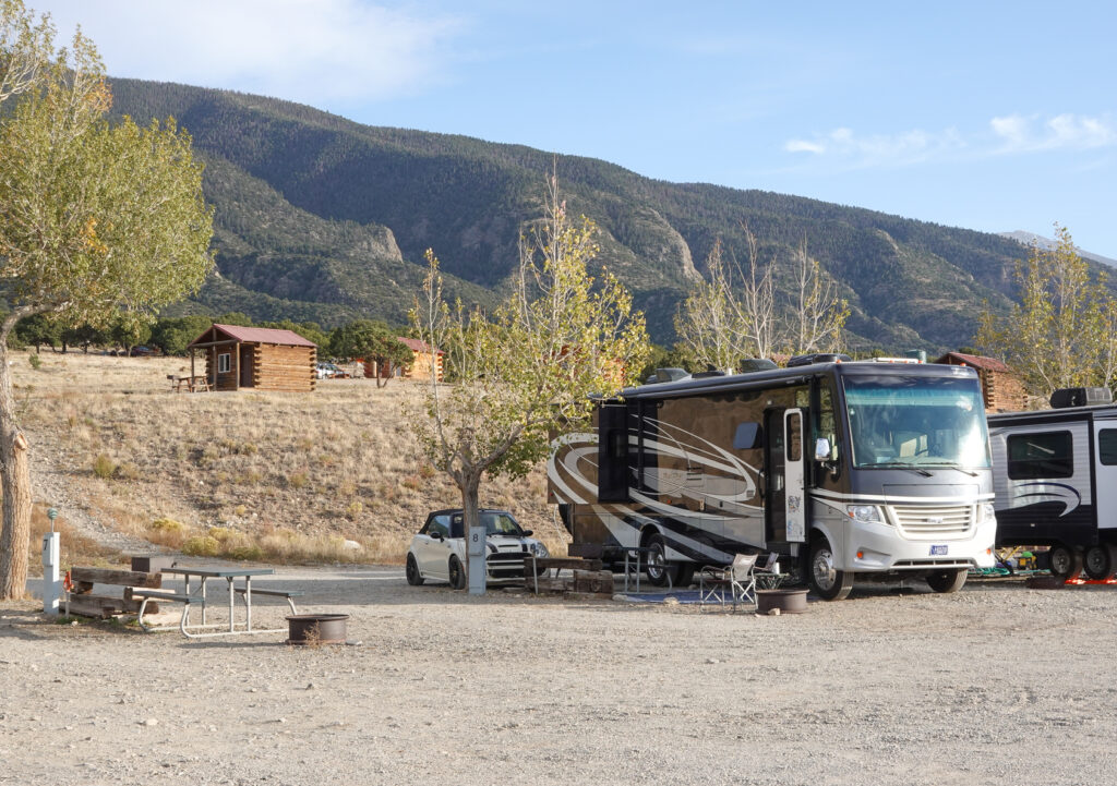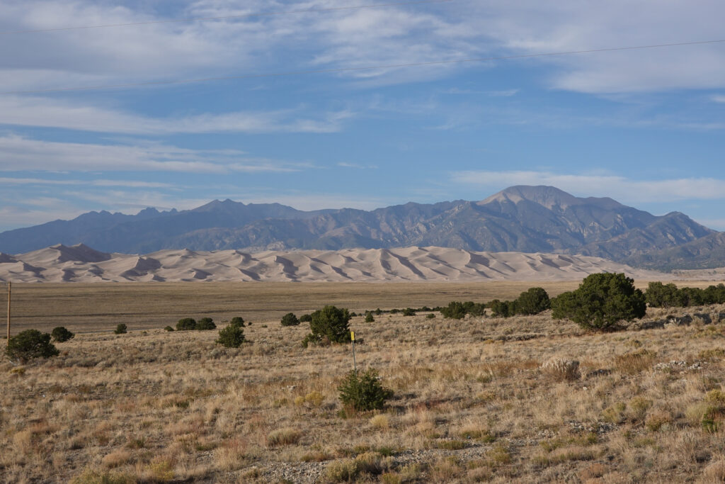 The drive to Great Sand Dunes is not far and the terrain changes significantly from mountainous to more flat/arid climate. Our reservation is at Great Sand Dunes Oasis campground. As we pulled up to the campground we almost weren’t sure we were in the right place! Great Sand Dunes Oasis is the only thing in the area for camping outside the National Park with hook-ups.