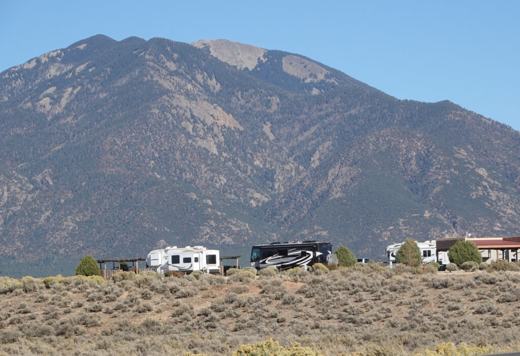 After a windy day in Great San Dunes yesterday we got off to an early start today. (The wind is usually lighter in the early part of the morning we have found). The drive down to Taos, NM was absolutely beautiful. It was not a long drive and we arrived at Taos Monte Bello RV Park with plenty of time to enjoy the afternoon.