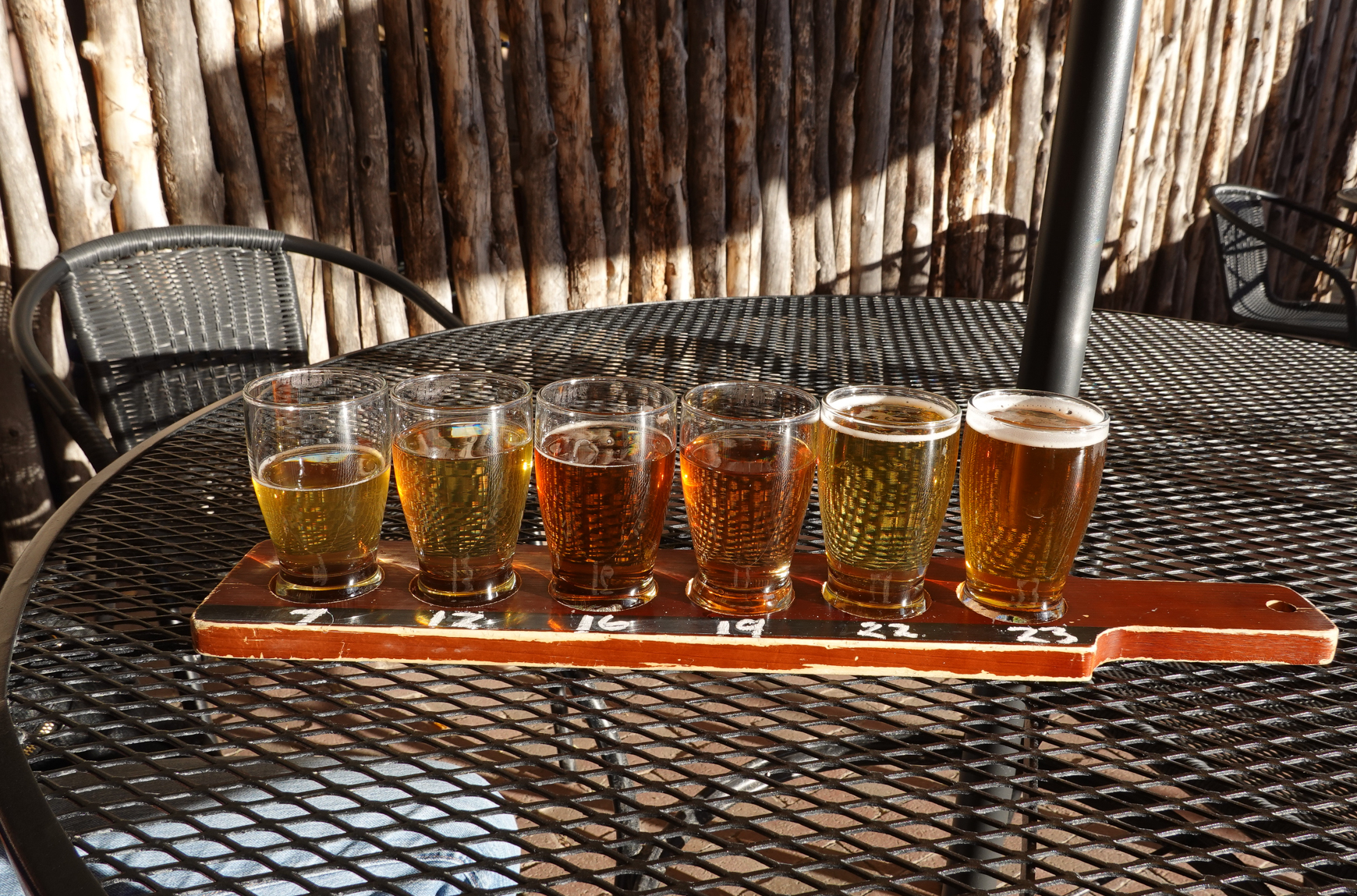 Afterwards we took a drive through downtown Taos and a stroll through town. It is a very old town and not much was open because of Covid restrictions but it was fun to look in shop windows and get the feel of the town. We did come across the Taos Mesa Brewery , just before turning around and stopped for a sample-flight followed by a favorite pint from our sample coupled with one of their amazing pizzas…!!