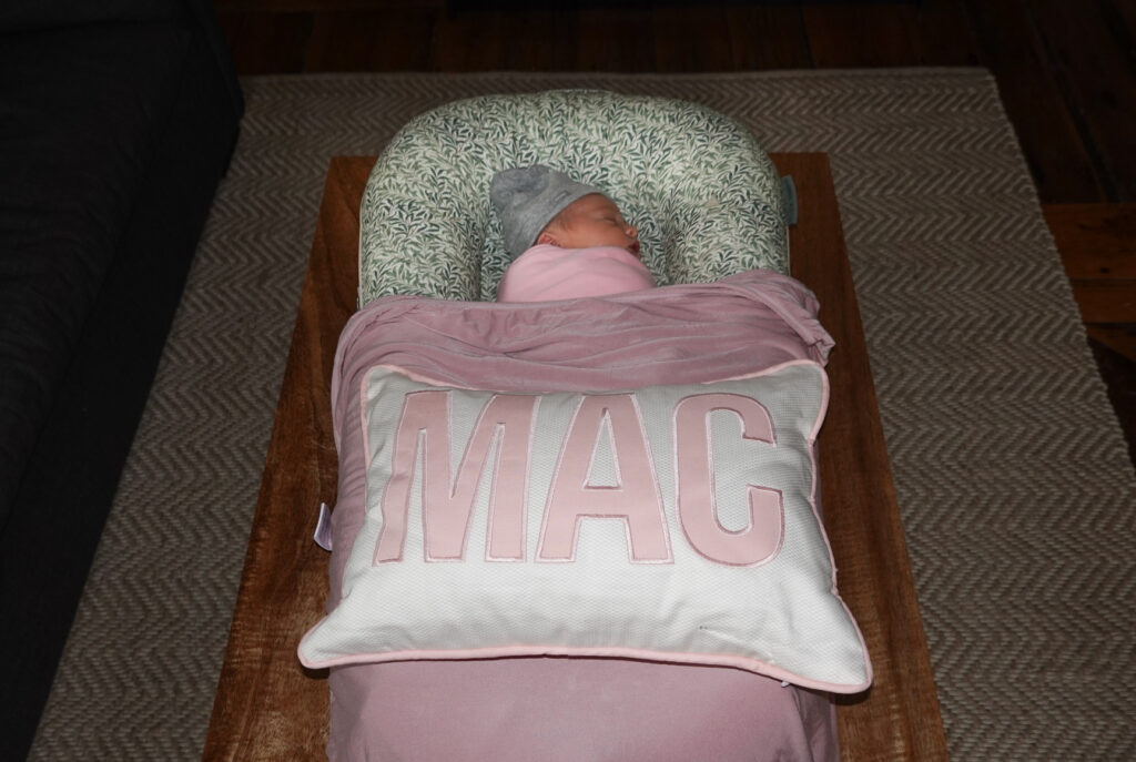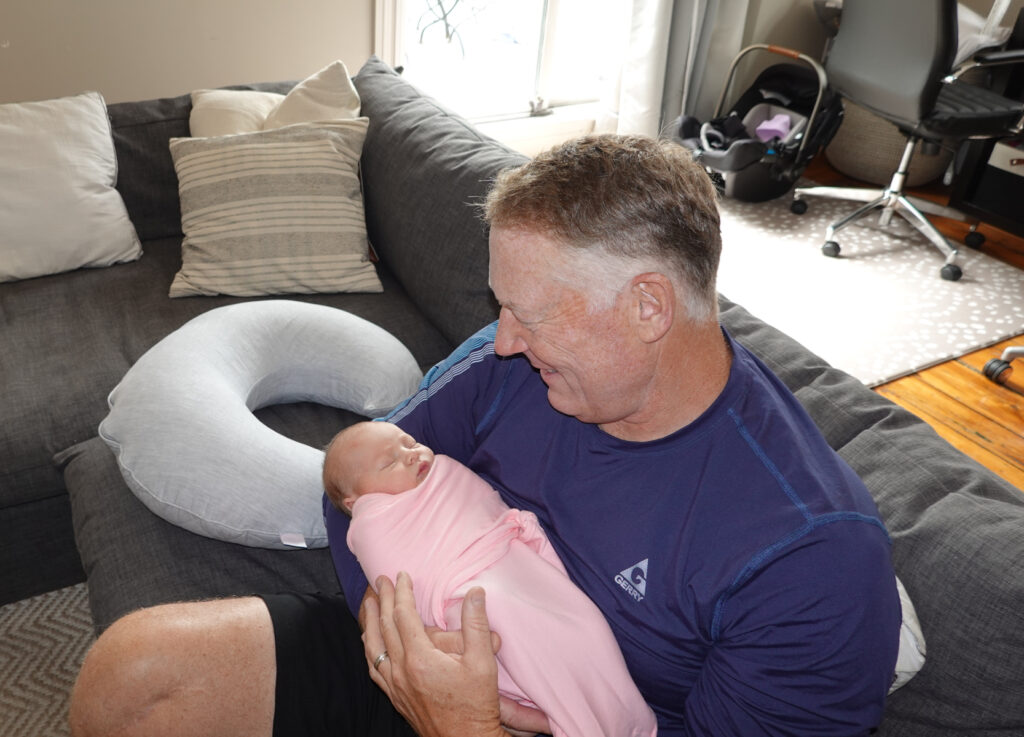 We were in love with Mac immediately and are beaming with excitement beyond belief… Cait and Bruce were very tired still, with the delivery nightmare still fresh in their minds, so we tried helping with the baby, walking their dog Dakota, and just being supportive. Over the next week we visited maybe every 2-3 days bringing meals and trying to continue to help anyway we could. Neither of us could get enough of oogling, and holding “Mac”.