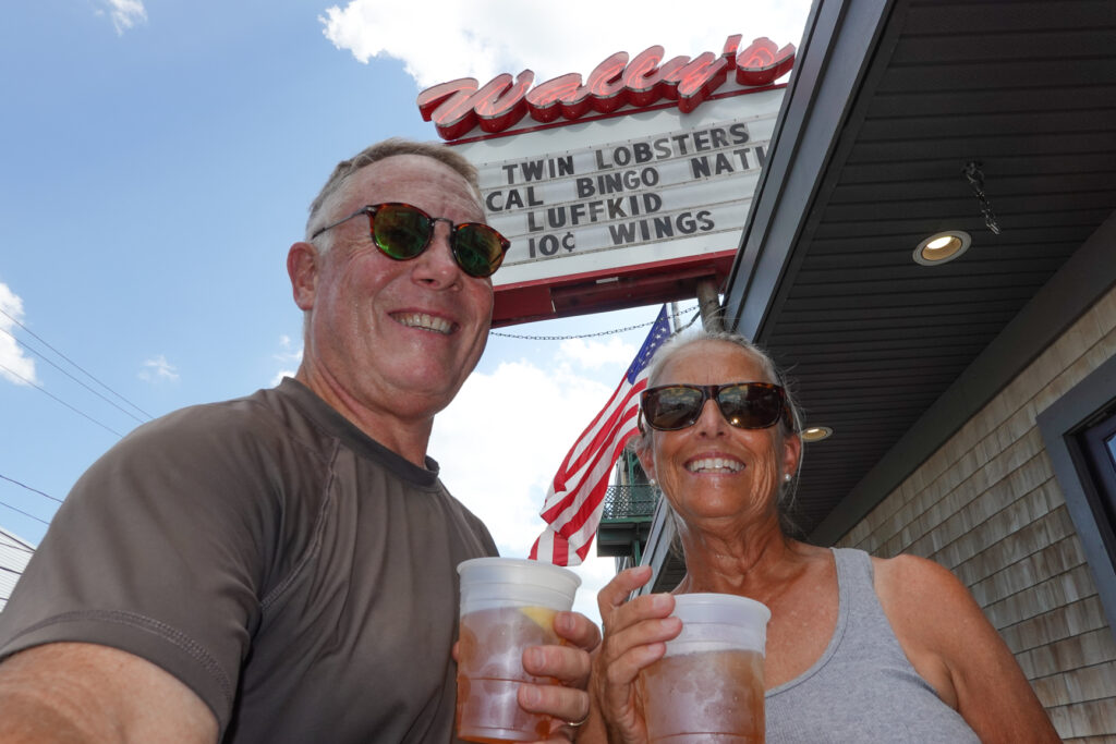 We stopped for a beer and snack mid afternoon at a waterfront eatery that worked perfect. We had tried to visit Kennebunkport Brewery” though unfortunately it was closed for the day. We opted not to eat dinner because we hoped to head over to our favorite Lobster Hut nearby in a few hours. Nearly every time we have visited this area we have tried to stop for Lobster’s at “Nunan’s Lobster Hut”… (Yes the same spelling as our last name and probably related somehow from history back in Ireland many years ago…) – Eating at “Nunan’s” we both reminisced about our first visit here many years ago when our own 2 kids were still just toddlers.