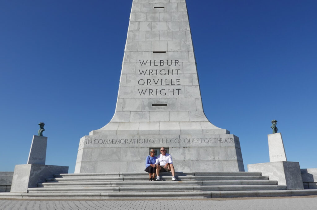 Our goal was to drive through Virginia Beach on the way to the “Outer Banks of North Carolina”. In all our years of travel we have never visited or camped in the “Outer Banks” so we were excited to check off this new area! Our path was taking us through Kitty Hawk, NC, the home of the Wright Brothers first flight, and this National Memorial hosted by the National Parks System was our first stop of the day.