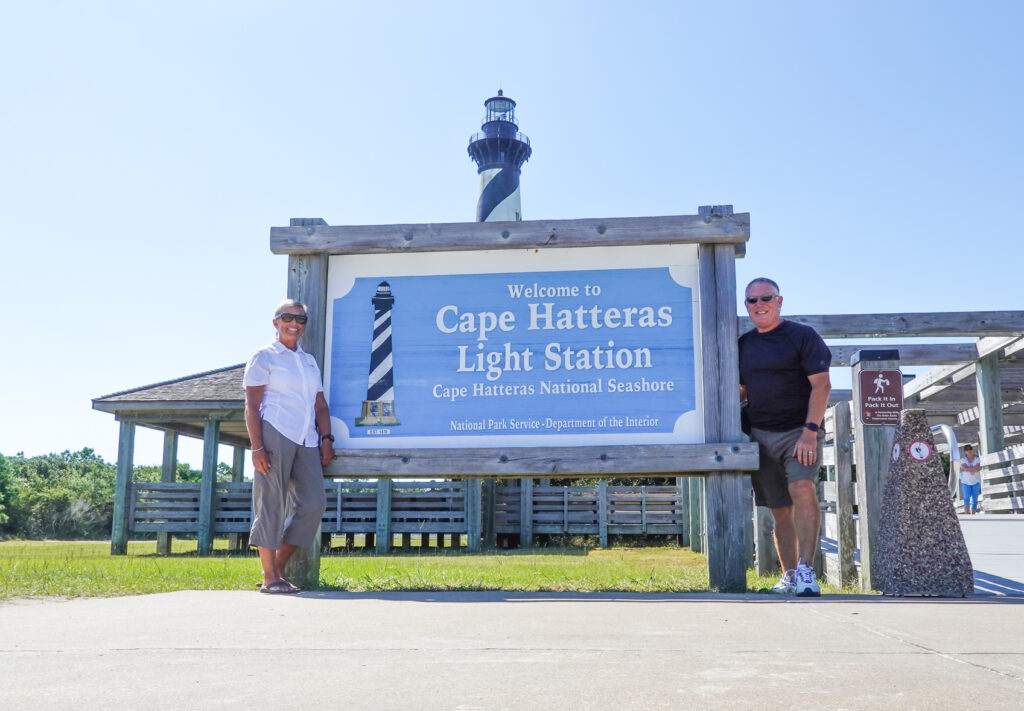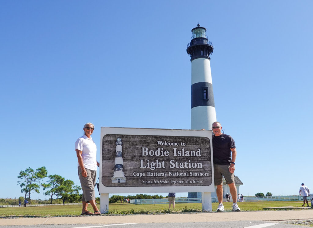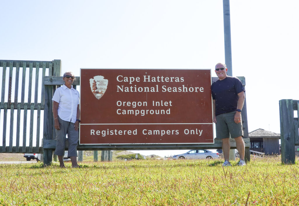 We arrived at our first campground not far from Kitty Hawk, NC at the NPS Oregon Inlet Campground. It is a nice, small, remote campground with a very short walk to the crashing waves of the Outer Banks. We were recommended this campground by our friends Julie & Fred who had volunteer hosted here a few years ago. We actually met the Host coordinator and talked at length about maybe a future volunteer role here. It is beautiful and very close to the beach…