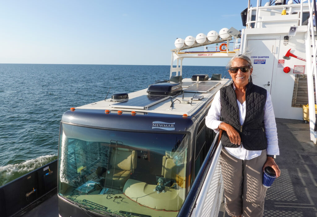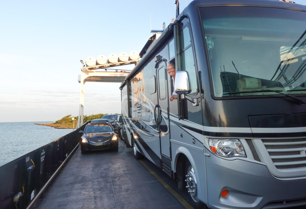 When we arrived at the free ferry taking you from Cape Hatteras to Ocracoke Island we had about 90 minute wait because of other cars that were already on standby. The ferry ride is only about 45 minutes long. While on line we were able to lock the camper and walk through the adjacent beach shops. The ferry typically loads between 5-10 minutes before departure, and if you’re not in your vehicle, the NCDOT staff will simply guide traffic around your parked car. Best not to risk the inconvenience of moving your vehicle and waiting for the next ride by simply being by your vehicle close to departure time. We were ready when the load sign came…