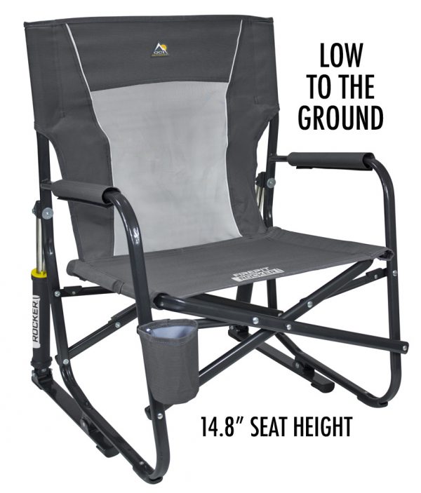 The chair we bought was the GCI low-ride fire pit chairs. It features smooth rocking, padded armrests, and mesh backrests to keep you cool and comfortable all evening long! These chairs are light, comfortable, and we love the rocking feature.