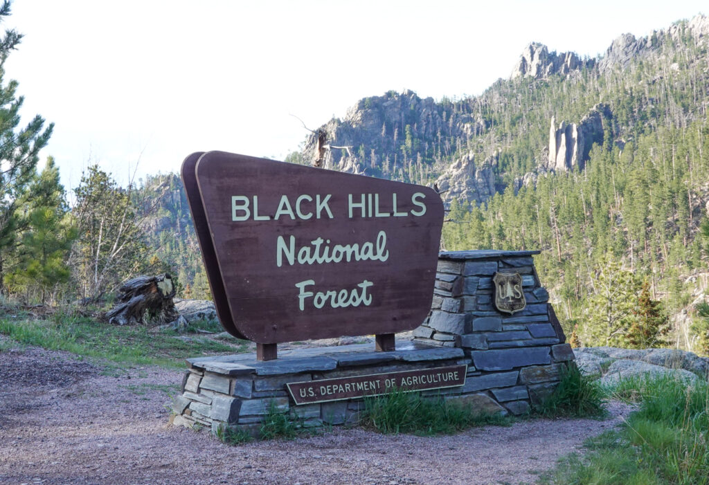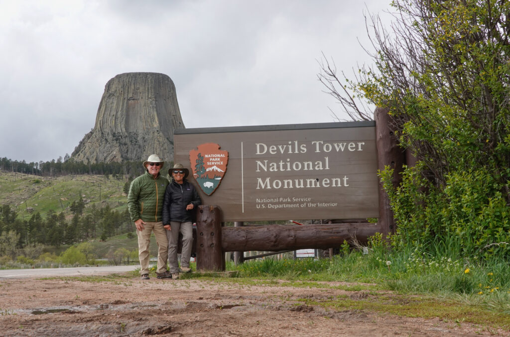 Departing Buffalo, Wyoming our next stop will be ” The Black Hills & Devil’s Tower . The drive to Devil’s Tower took us through a diverse set of weather patterns in a single day beginning with the worst snow storm we have ever driven through in the motor home. As we head into the Devil’s Tower area the skies begin to clear some so we will finish the day in the Devils Tower area in the clear. Not having a reserved campsite in the Devil’s Tower campground we have a little concern about availability though the ranger at the entrance indicates they have availability. She told us the system, “Just pick a site and put this tag on the post.” Easy!!!
