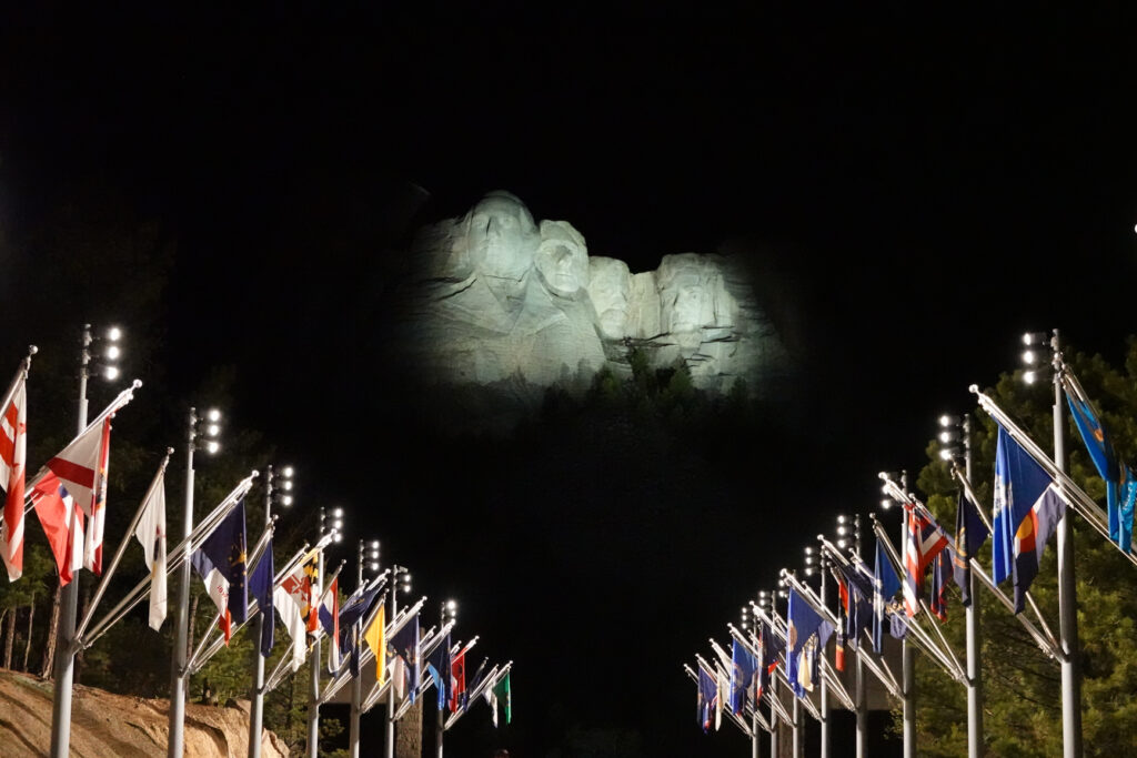 With the beauty of the mountains and valleys as its backdrop, Iron Mountain Road was specifically designed with a tremendous amount of curves and switchbacks to limit the speed of travelers to 35 miles per hour so that they can enjoy the beauty of the Black Hills. What makes this road so unique and memorable is not just the amount of curves and the surrounding beauty, but also the architectural features found along this road. These features include wooden structures, called pigtail bridges, and one lane tunnels that were built to showcase the American patriotic symbol, Mt. Rushmore. These tunnels frame Mt. Rushmore National Memorial like a picture frame and are a spectacular site, especially at night… Bonus is no one is on the road!!! We have the road to ourselves to take pics and enjoy! What a way to finish our day!!!!!