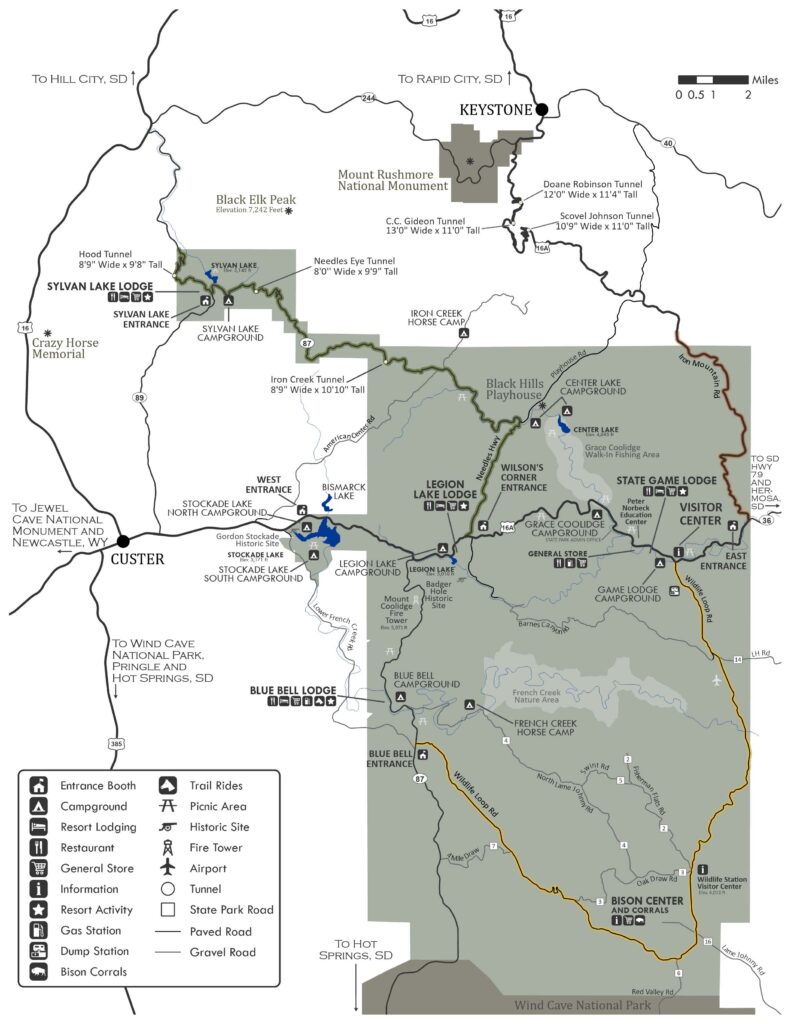 We are hoping the tour tomorrow at Jewel Cave is better. We decide to drive through a small section of custer State Park on our way home which will include the famous “Needles Highway” . The Needles Highway is over 14-miles long and provides a spectacular drive through pine and spruce forests and rugged granite mountains. The road’s name comes from the needlelike granite formations that seem to pierce the horizon along the highway. Just past the “Needle” is the beautiful Sylvan Lake!