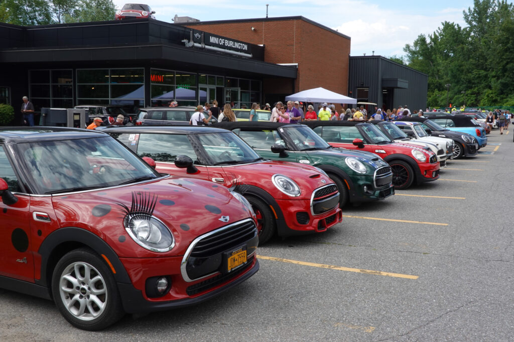 We decided to take a break after about 3 hours of driving at the Northway ‘s Adirondack Park Welcome Center. A well deserved restroom break and a picnic lunch were on the agenda when suddenly we realize many other MTTS MINI drivers are doing the same thing. This is the first place we realize that MTTS 2022 may be a “Big Deal”. We introduce ourselves to a few other MINI people heading to the rally! We all chat for a bit then continue on our way! It took most of the day to travel up to the Burlington Registration/starting point. Arriving at MINI of Burlington, Vermont we could quickly tell this is going to be a fun couple of weeks. MINI’s were everywhere! All colors, years, styles, and so many personalized or customized…