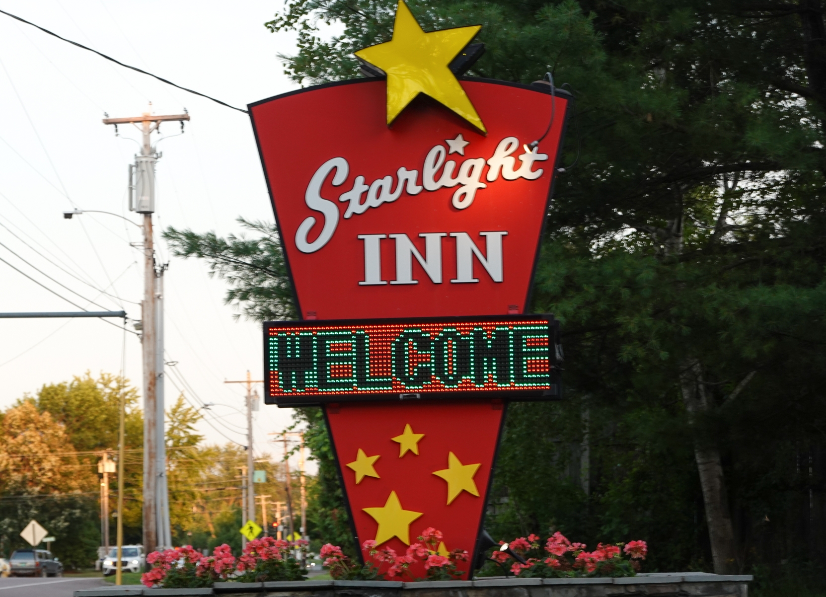 Our hotel was in Colchester, VT which is about 40 minutes from the rally point, in the morning, but only a few minutes from downtown Burlington, which is where we planned to hang out for the evening. We got over to the hotel, but couldn’t figure out how to check in, as there was no office there! Mike called the number on our email confirmation and the guy said we could find the key under the flower planter and everything should be all set! When we walked into the room there were tickets to the drive in movie next door for free!! Awesome!! The Starlight Inn was a great place (though pricey at $250.00 per night). We drove back into Burlington to catch dinner at The Vermont Brewery, which was very good, and then walked around Church Street for awhile.