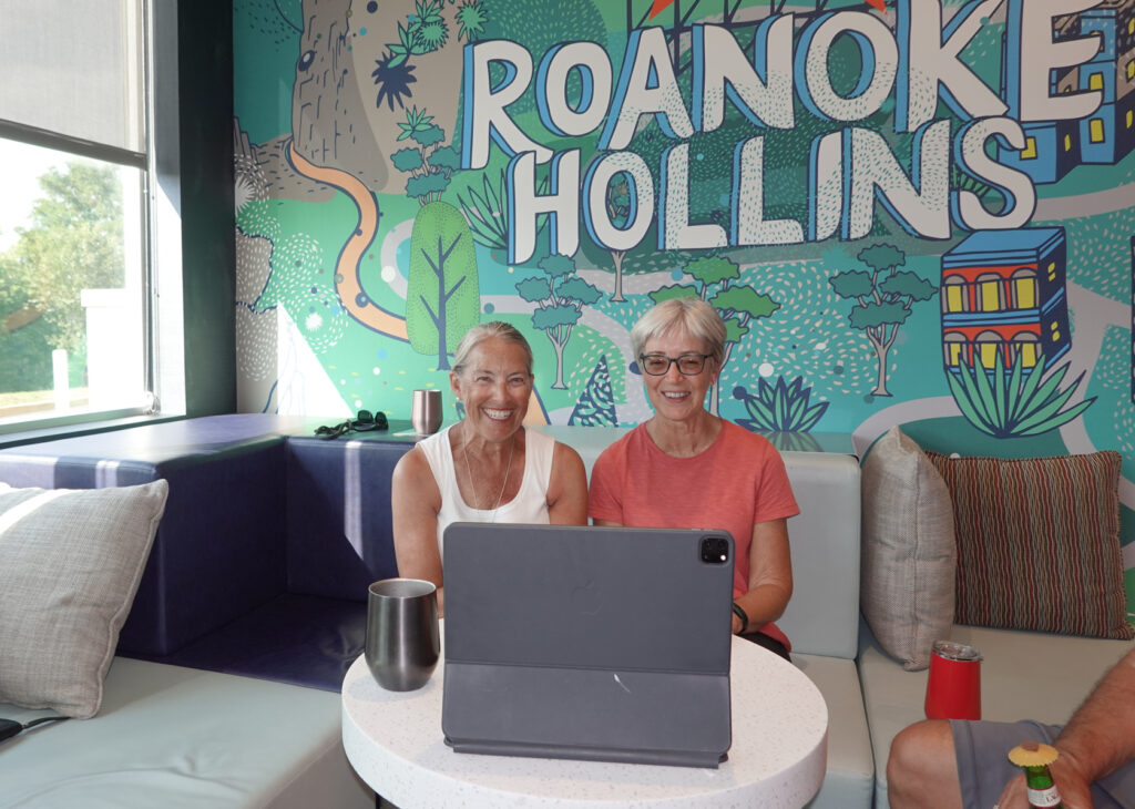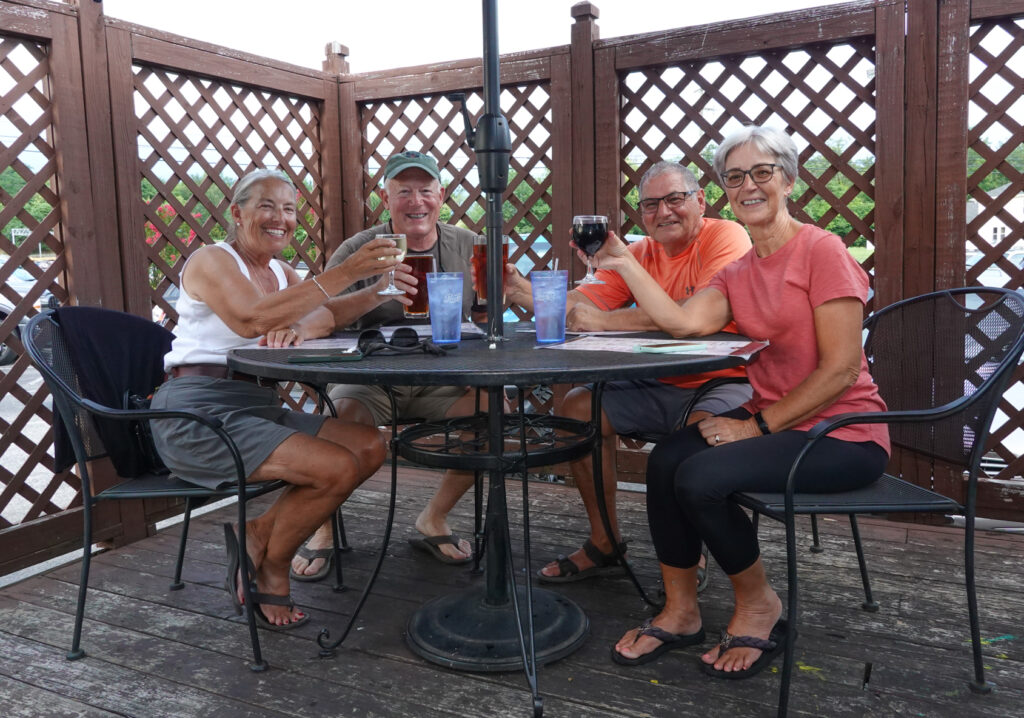 We know Joanne’s sister Deb and brother in-law Tony are driving northbound from Florida and are also planning to camp near the Blue Ridge Parkway/Skyline Drive over the next few days. Joanne thinks we may pass each other and tries to text Deb but ends up calling instead. At first just casual conversation and then Joanne brings up the subject of passing each other as we head South and they are heading North. Deb says no way- we are just too far apart to connect. Joanne says we are actually staying in Roanoke, Virginia tonight and Deb replies, “wait; you are going to be in Roanoke tonight?” — Yes. Deb replies, “We are going to be in Roanoke tonight too!” Our locations are exchanged and YAHTZEE it turns out they are camping within walking distance of our hotel! What are the odds! We make plans to meet for dinner and celebrate our wedding anniversary…. Serendipitous for sure!!!!