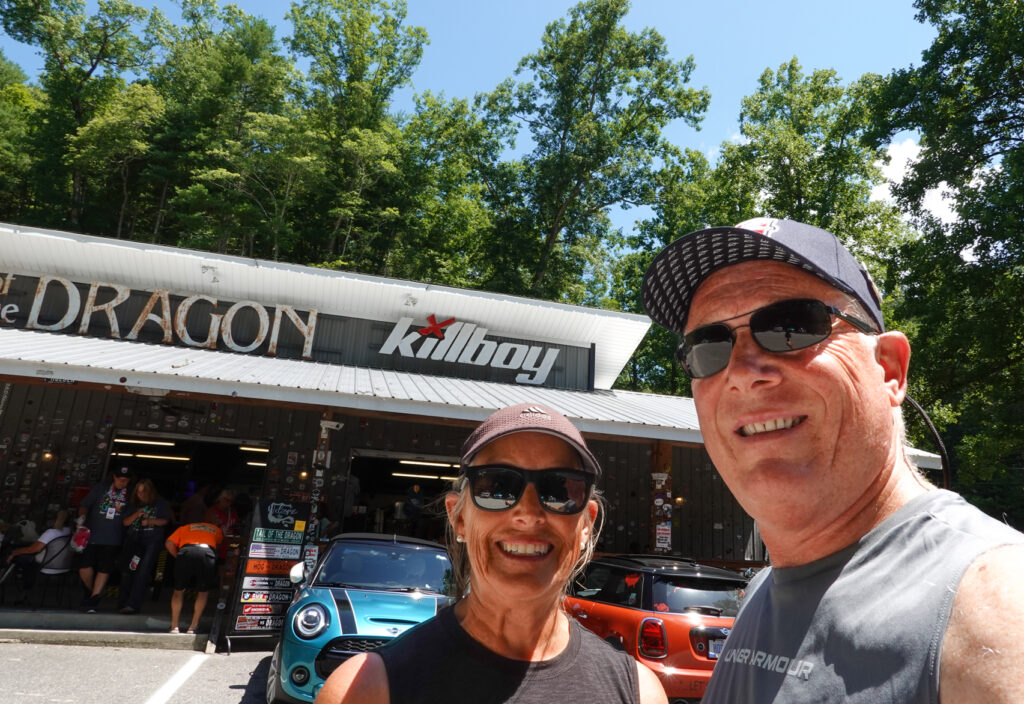 Well we drive The Dragon twice and loved every moment of that 11 miles or 22 miles! It was so much fun driving with our friends and so many other MINI enthusiasts! We actually got grouped with a a group of “Roadster MINI’s for awhile and could those little cars corner … We had a blast in both directions. Afterward we continued on and took a drive through more mountains in the area which also were fantastic. Apparently we just missed a flash flood in the mountains and when the sun came out it was spectacular. While it rained we actually had our convertible top up for about 1.5 hours for the first time since leaving NY. Once it cleared that top came down again!