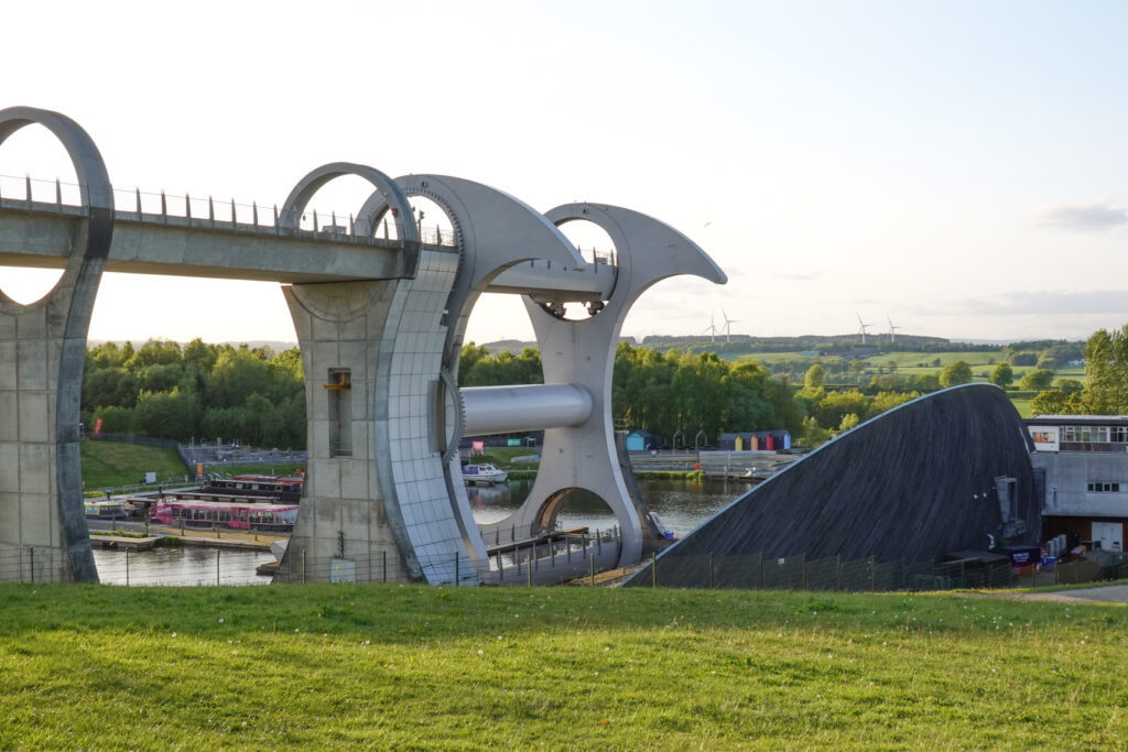 Departing Stirling for our drive back to Edinburgh we thought of 2 more quick stops that would complete the day. First up the “The Falkirk Wheel “ . The Falkirk Wheel is a rotating boat lift in Tamfourhill, Falkirk, in central Scotland, connecting the Forth and Clyde Canal with the Union Canal. It reconnects the two canals for the first time since the 1930s. It opened in 2002 as part of the Millennium Link project. This is an impressive engineering marvel! When we were on the Panama Canal cruise someone had told Joanne about this unique lock system near Edinburgh and we are thankful they mentioned it to us. By the time we got there the information center and locks were closed but we could wander around the area and then while there we pulled up a YouTube spot about how the lock system works. Very interesting and highly recommend a stop to see it if you are in the area!
