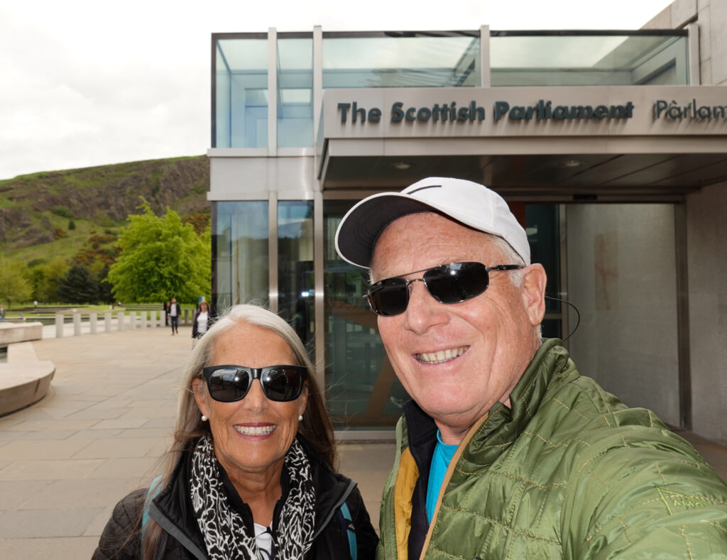 Once at the bottom we find a place to sit for awhile and then begin talking to a police officer outside of parliament. We thought we would tour “Holyrood Palace” but he told us it is closed for these two days of this week. Fortunately we did visit it back in 2013 on our last visit here. The friendly police officer suggested we could watch a session of parliament in session if we wanted so (what the heck!) that’s what we did! It was interesting with the first “discussion” dealing with schoolteachers working conditions and treatment and the second about ventilation systems in hospitals. Very interesting to see how all this works here!