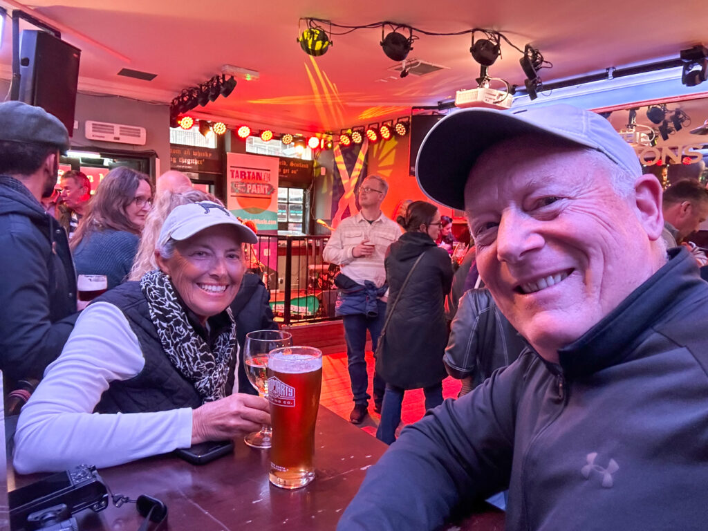 We found ourselves at Black Isle Bar and sat at the end of a table with another (interesting) couple at the other end. The conversation was great, the pizza awesome and drinks usual! It was a great place for dinner! As we began our way back to the car we heard some music at “Gellions” so walked into that pub. The music was very good! First up was Tartan Paint and the vocalist was very good! We had fun chatting with people and listening to music. Once he finished two women sitting at a high top table were leaving so offered us their table! Awesome! Next up was Willie. Wearing the usual Scottish garb of a kilt, knee socks and a t shirt he was another awesome musician! We enjoyed his music for maybe another hour before we decided at 10:30 to call it a night as we still had to drive home! Just as we were leaving our table the original girls that gave us the table came back so we switched places for them to have the table back!!
