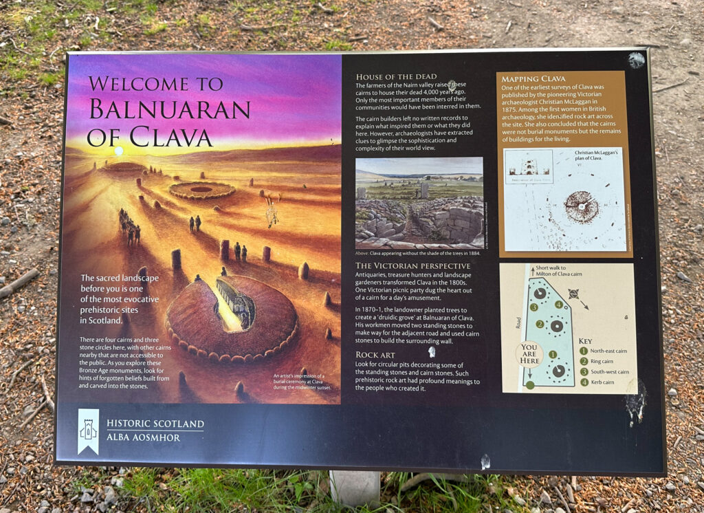 We spend a bit of time there before heading out to hopefully find Clava Cairns. The GPS takes us into a shopping center and we continue to look on foot and finally ask an older woman who might have a clue what we are looking for! She gives us verbal directions and we are able to find it several miles away (actually walking distance to Culloden Battlefield- if we only knew!). This was very interesting and we were very glad we had found it! We spent maybe 30 minutes there before heading to dinner.