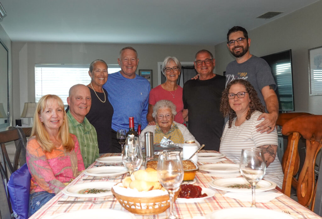As we begin our drive down toward Bradenton to 1) wish Joanne’s mom a happy birthday and 2) get some work done on the RV, Mike suggests calling sister Deb to see if we may be able to park the RV for one night at their neighbors yard. The plan is OK’d and that becomes the new plan. We are happy because although today is not her actual birthday, it is the day she will celebrate at Deb & Tony’s along with their son Jeremy and wife Tara.  We will be able to surprise her!  As we arrive Tony and Jeremy help guide us into the area where we can park and we go in to surprise mom! She is so surprised!!  We are so happy we did this, although it is surprising how much decline has occurred since the last time Joanne saw her in June.