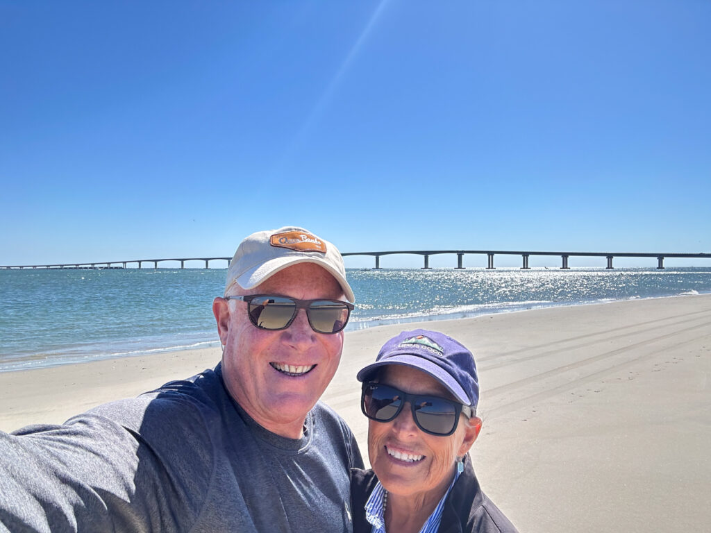 The drive down to Oregon Inlet on the Outer banks not far from the famous “Kittyhawk” area is not difficult though when you tack on time to dump, get propane at Tractor Supply, hitch up the car, stop for gas and groceries along the way, we were still looking at almost an 8 hours driving day!  Fortunately Deb & Tony had taken the same path several days earlier and were already at Oregon Inlet and offered to have dinner ready for us when we arrived (Shrimp Fried Rice)- Yum!  We did same for them when they arrived at Assateague this year so it made set up and enjoying arrival day so much easier!  Once settled we began a routine of morning tea in the “backyard” in the sun after breakfast, a drive to do something in the area mid-day, then home for Happy Hour, dinner and a game for the evening. Unfortunately several of our first few days were too windy and cold to sit outside. In fact, the first morning we had to turn the heat on!