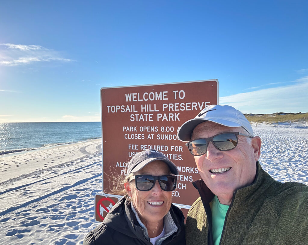We say our goodbyes and thank you to family in Bradenton, Florida as we start our trek West for the “Snowbird” season in California. We’ve got 3,000 miles to go though plan on stopping in the Florida panhandle at Topsail State Park neat Destin, Florida. For years we have  heard great things about this state park and had made reservations to camp here over 6 months ago.