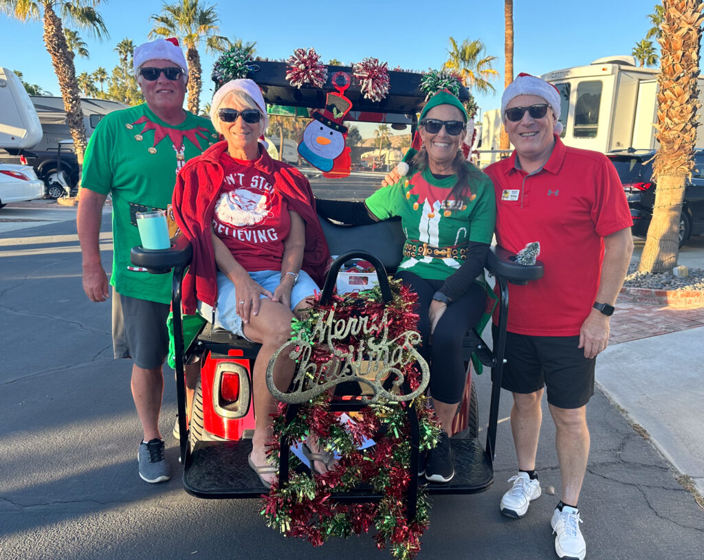 We decide to just boondock for several nights as we put in some long mile days. Not our normal practice but we had traveled so much this year we were just ready to settle in for the holidays at DSRV. The drive was uneventful, and though we usually enjoy driving days just not this long. Mike was interested in getting to the desert in time for the annual DSRV Holiday Golf Cart Parade. It’s a tradition in the park and always fun. Many of our snowbird friends had been reaching out for weeks asking us when we were getting back. It’s always nice being missed…