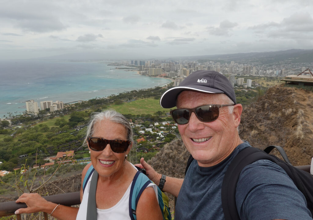 On April 11, 2024 we arrived at our first port of this 32 day cruise in Honolulu, Hawaii. We had been to Honolulu back in the 80’s for 10 days where we did memorable tours of the the Arizona Memorial, Dole Pineapple Factory, Waimea Falls, Sunset Beach, and several other popular locations. Wanting to do something different this time we decided that a hike to the top of Diamond Head not far from Waikiki Beach would be an excellent adventure while also getting some exercise and lord knows we needed it give those rolls we were eating at dinner every night…