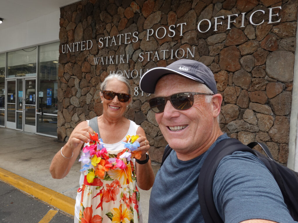 With our hike completed we decided since we really enjoy walking and we still had plenty of time we would walk most of the way back to the cruise terminal. Yes this was a long way, but doable… On the way back on Waikiki Beach we decided to get Mac a gift which we could mail form here and get a prescription we forgot to pick up before departing along with another “Rummikub Game” which we love to play and forgot and didn’t have any to borrow on the boat. Target turned out to be a good stop for everything except the dress Joanne bought form a street vendor for Mac.